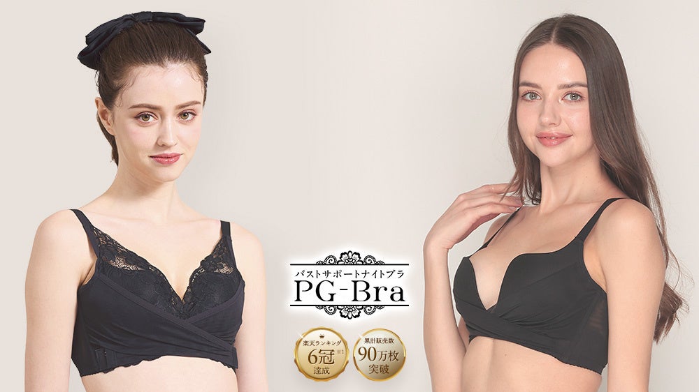 バスト専門のプロが徹底的にこだわり作成したオリジナルナイトブラ「PGブラ」シリーズ は、2024年5月12日時点で累計販売90万枚を突破しました。お客様のご要望に応えて誕生 した「PGブラノンワイヤー」も、発売開始から完売続きの人気商品です。ノンワイヤーで ありながら、「PGブラ」のホールド力や脇高設計をそのまま維持し、快適な着け心地と美 しいバストラインを提供します。PGブラシリーズは、バストケアに特化した設計と機能性 で多くの女性から愛されています。