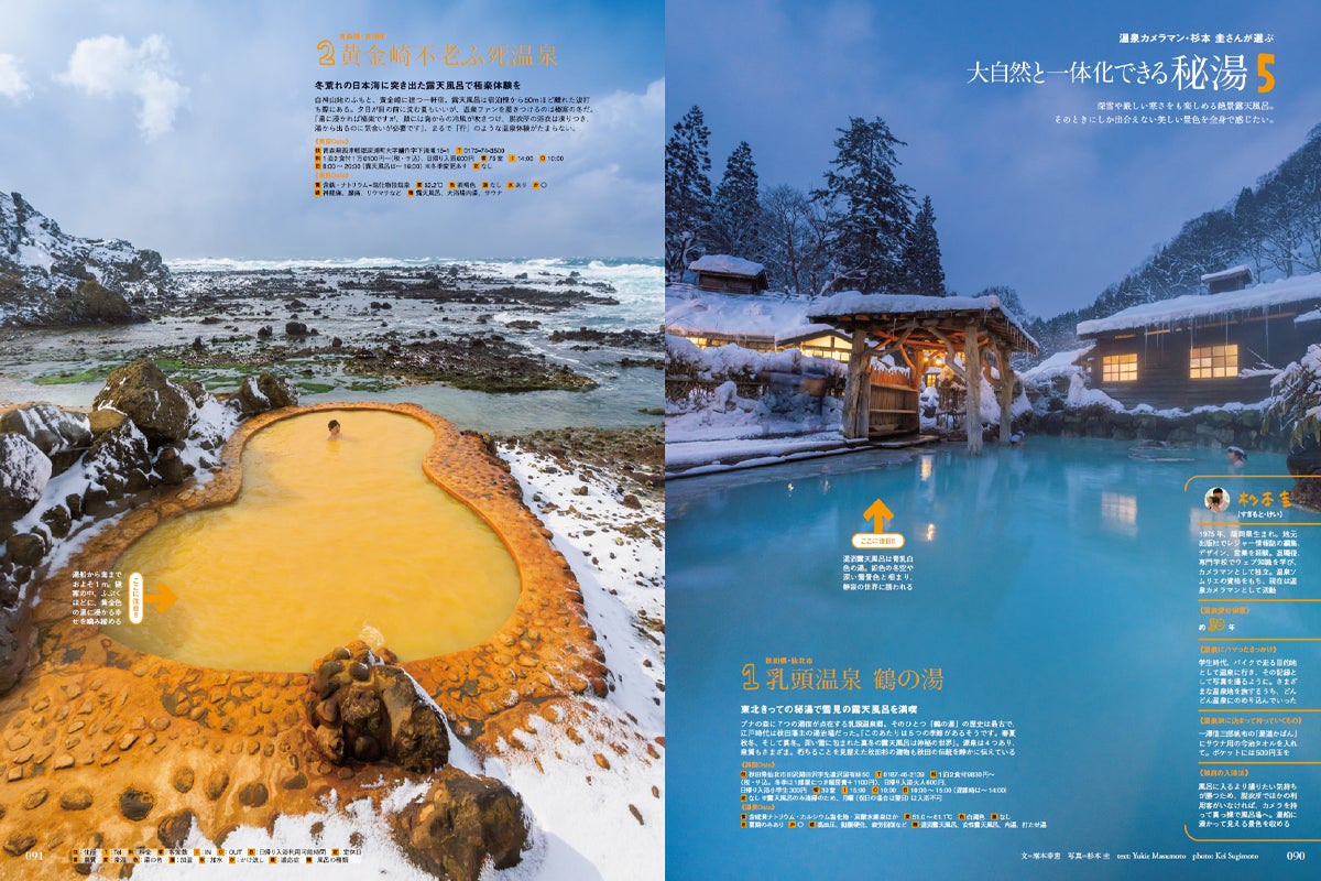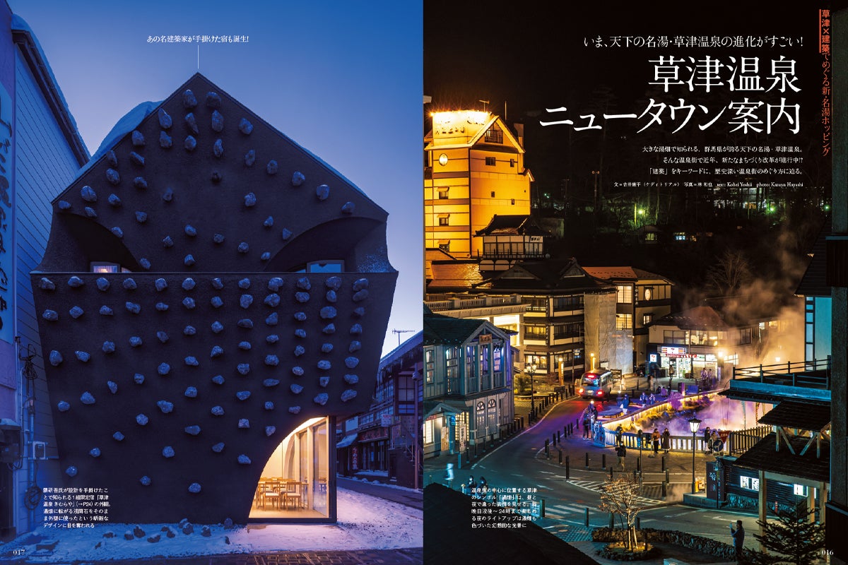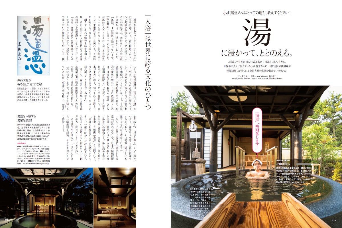 巻頭では、温泉、旅館通で知られる放送作家・小山薫堂さんが、日本特有の入浴文化やその魅力をおすすめの名湯とともに紹介。