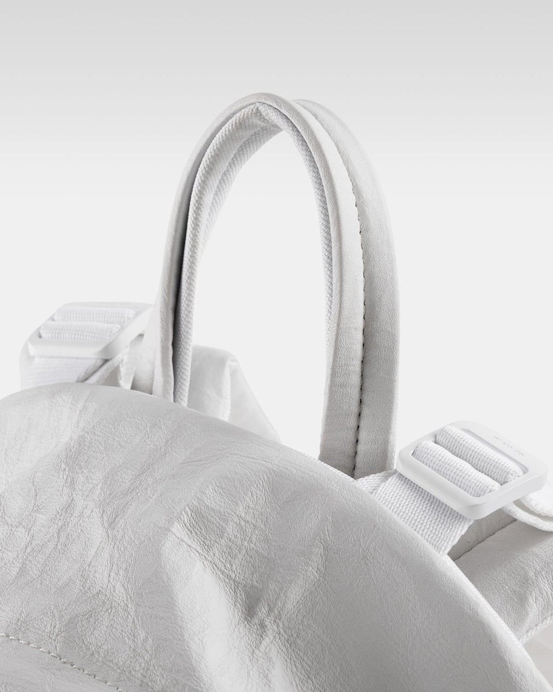 ショルダーテープや金具、背面素材まで、ホワイト・ブラックともに外観は全て同系色で統一。機能性を持ちながらも美しいプロダクトに仕上げるため、ストイックにミニマルな美しさを追求したデザインです。