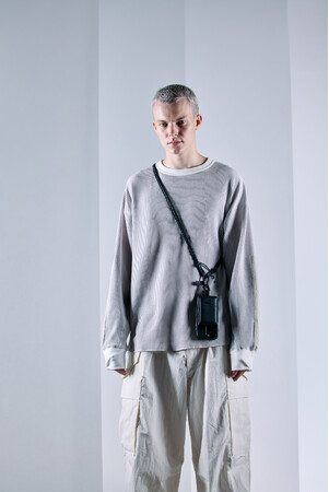 その思想をプロダクトとして体現することを目指し、meanswhileのデザイナー・藤崎尚大氏とobjcts.ioのデザイナー・角森智至の対話から始まった本コラボレーション。meanswhileのバッグ・objcts.ioのiPhoneアクセサリーを、両デザイナーが相互に再解釈・再編集したラインナップが完成しました。デジタルデバイスの筐体からインスパイアされた潔いホワイト、シックなスタイリングにもマッチするブラックの2カラーで展開します。