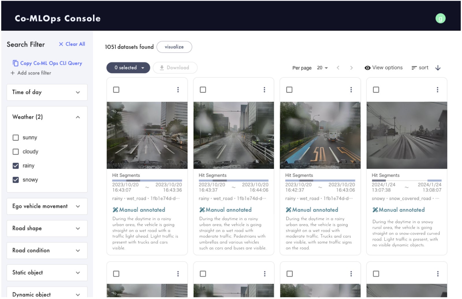 収集したデータはCo-MLOpsプラットフォームにアップロードされた後、品質確認、共有のための匿名化、検索のためのタグ付けなどの処理がクラウド上で自動で行われます。また、アクティブ・ラーニング基盤による評価に基づき、AIの性能向上に有効なデータに対して優先的にアノテーションが行われます。これにより、利用者は自動運転のAI開発に必要なMLOpsを効率的に推進することができるようになります。