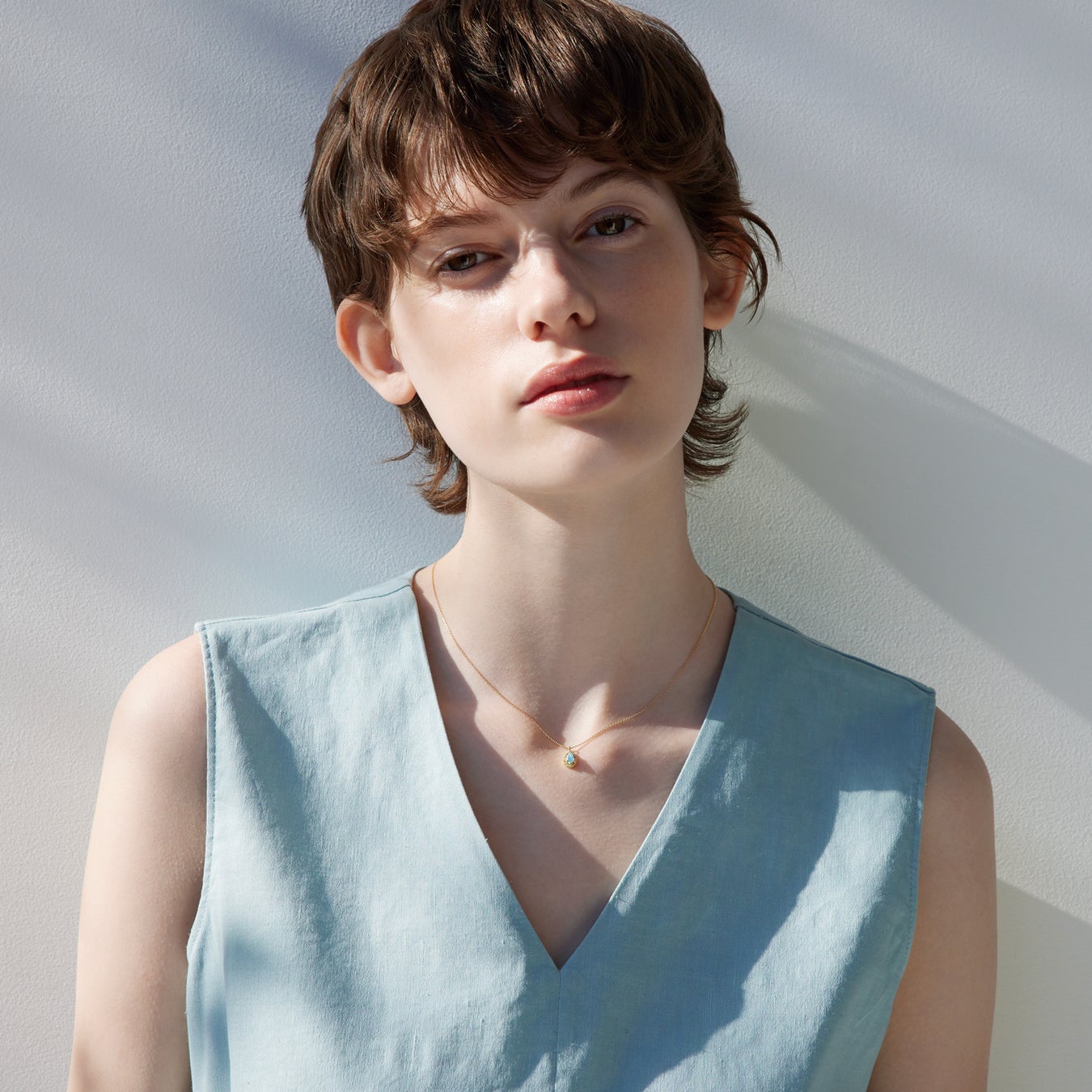 気分をすっきりとリフレッシュさせてくれるミント系の爽やかな香りをイメージして、清涼感のある色彩で表現したネックレス。