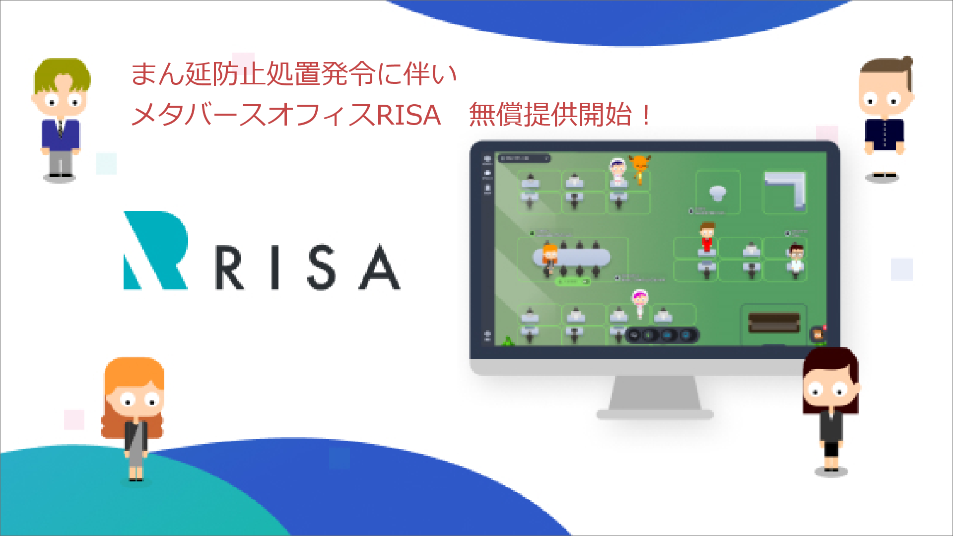 メタバースオフィス『RISA』を提供する株式会社OPSION(以下 当社)は、2022年1月25日、コロナウイルス感染拡大に伴うまん延防止措置発令を受け、メタバースオフィス【RISA】の無料提供を開始いたします。