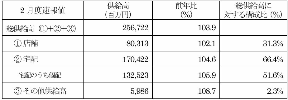 〇2月度の総供給高は、103.9%で前年超えでした。