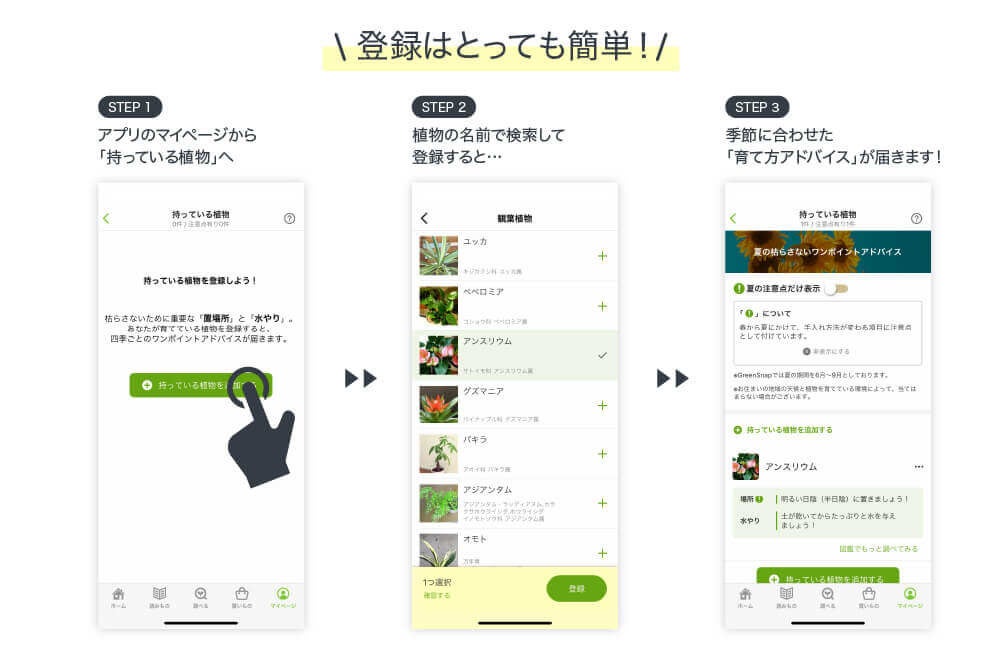 植物を購入したばかりで育て方が不安という方や、季節が変わり水やりの方法や日の当て方などが分からないという方におすすめの機能です。