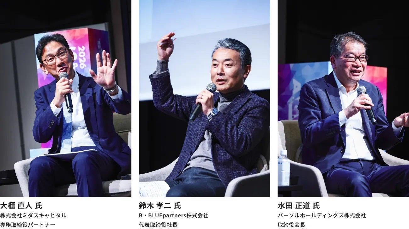 AGSグループ(本社:東京都千代田区、代表者:虷澤篤志、廣渡嘉秀)は、2026年2月5日、東京・大手町のホテルに115社、計150名のクライアントを招き、「AGS MEET UP 2026」を開催いたしました。パネルディスカッションでは、一流の経営者・投資家の方々に登壇いただき、以下をテーマに議論を交わしました。