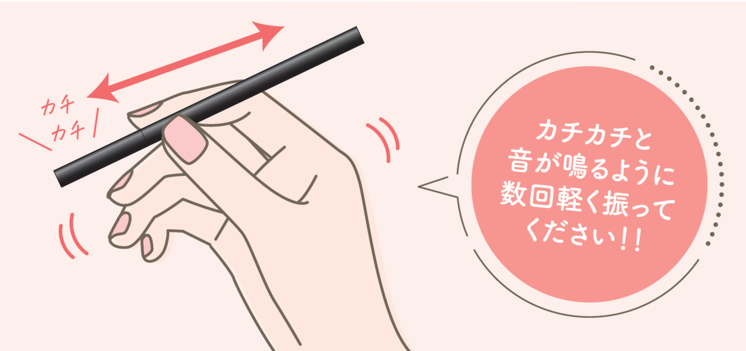 カチカチと音がなるまで数回軽く振ってご使用ください。