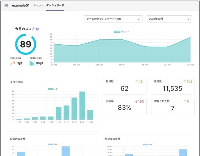 このスコアを活用することで、メンバーには自己成長の機会となる自動フィードバック、マネージャー向けにはメンバー把握のための自動検知を実施することができます。業務で日常的に使うツールに投稿する文章の分析から算出しているため、客観性が高く具体的な打ち手がわかりやすいのが特徴です。