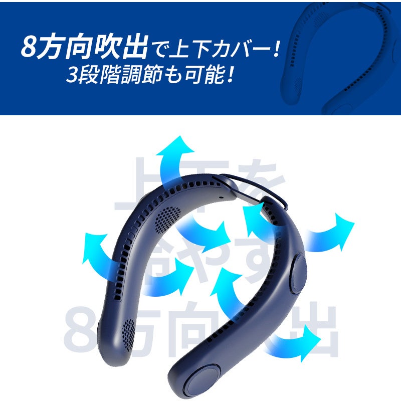 8ヶ所の吹出口で快適!この夏の必需品!【折り畳み式ネック扇風機】