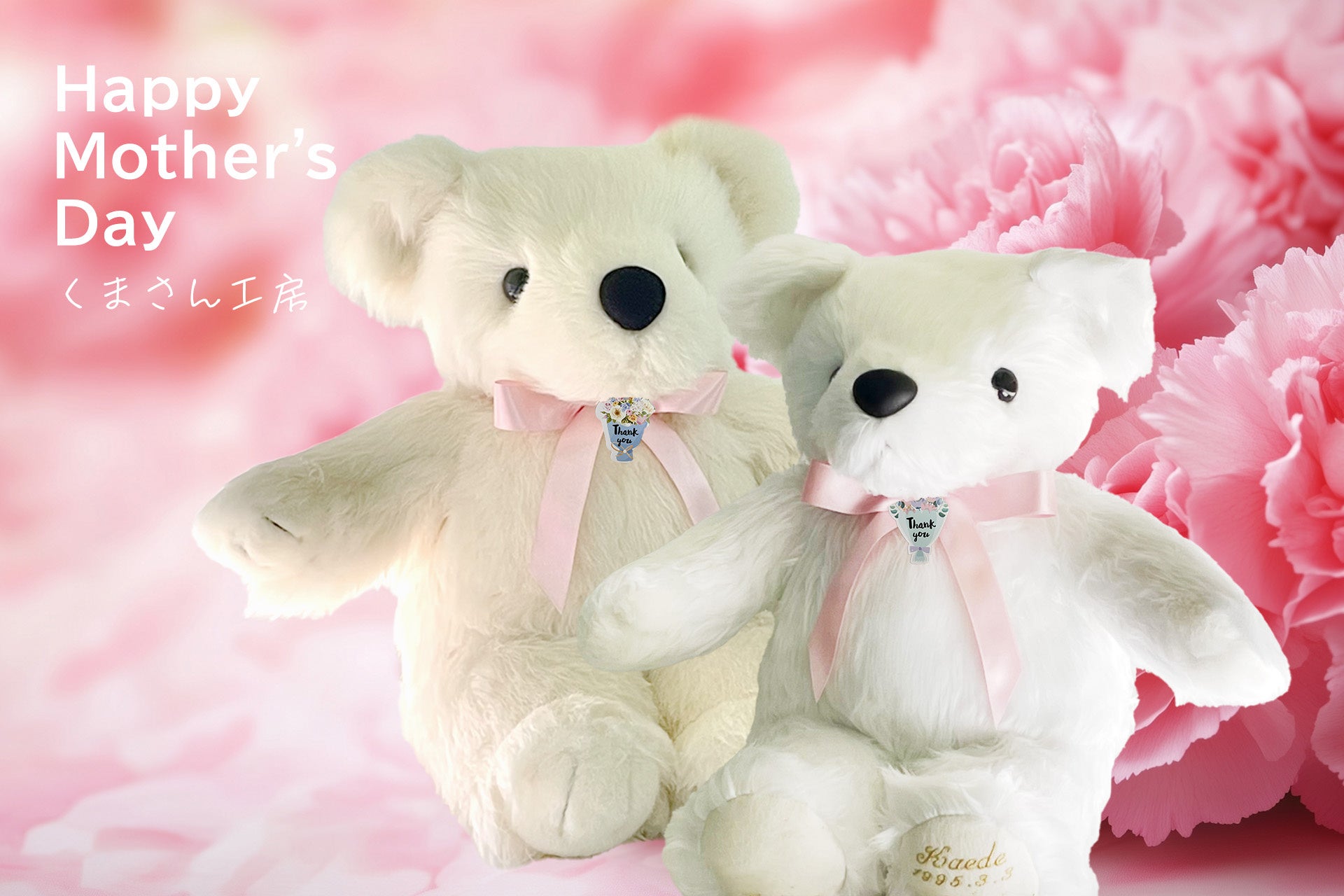 テディベア(くまのぬいぐるみ) を自社製造・販売する株式会社ドリーム・ワークショップが運営する、⾚ちゃん体重ベアくまさん工房(運営責任者:石井正之)では、直営の楽天市場店にて「母の日キャンペーン 2025」を実施中です。母の日ギフトとしてのご注文は、お届け先が関東・東北・中部・近畿地方の場合は5月10日(土)午前10時まで、お届け先が北海道・九州・中国・沖縄地方の場合は5月9日(金)午後3時までのご注文分で、母の日(5月11日)当日のお届けに対応いたします。「母の日に間に合うかな…?」と心配な方も、どうぞくまさん工房におまかせください。