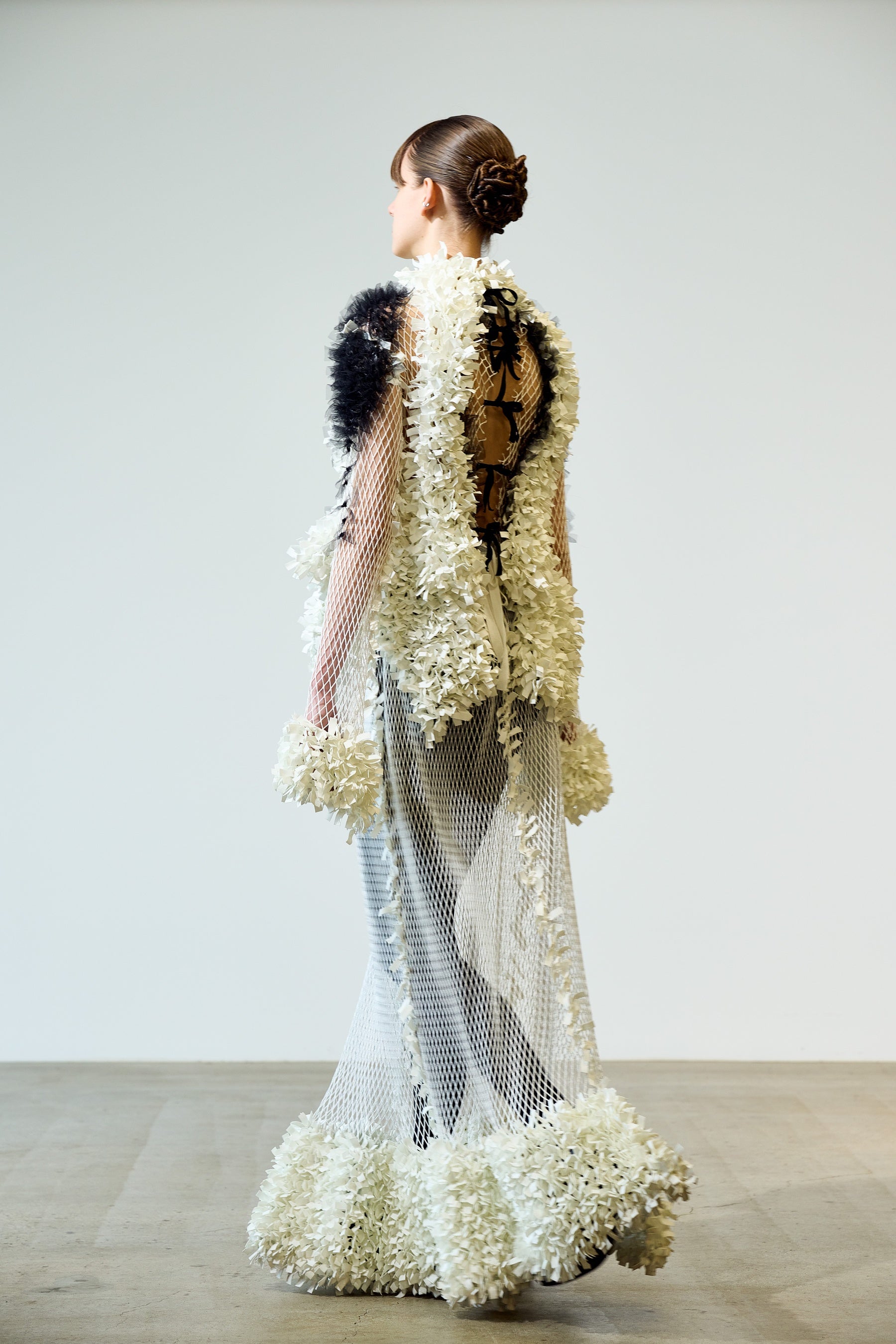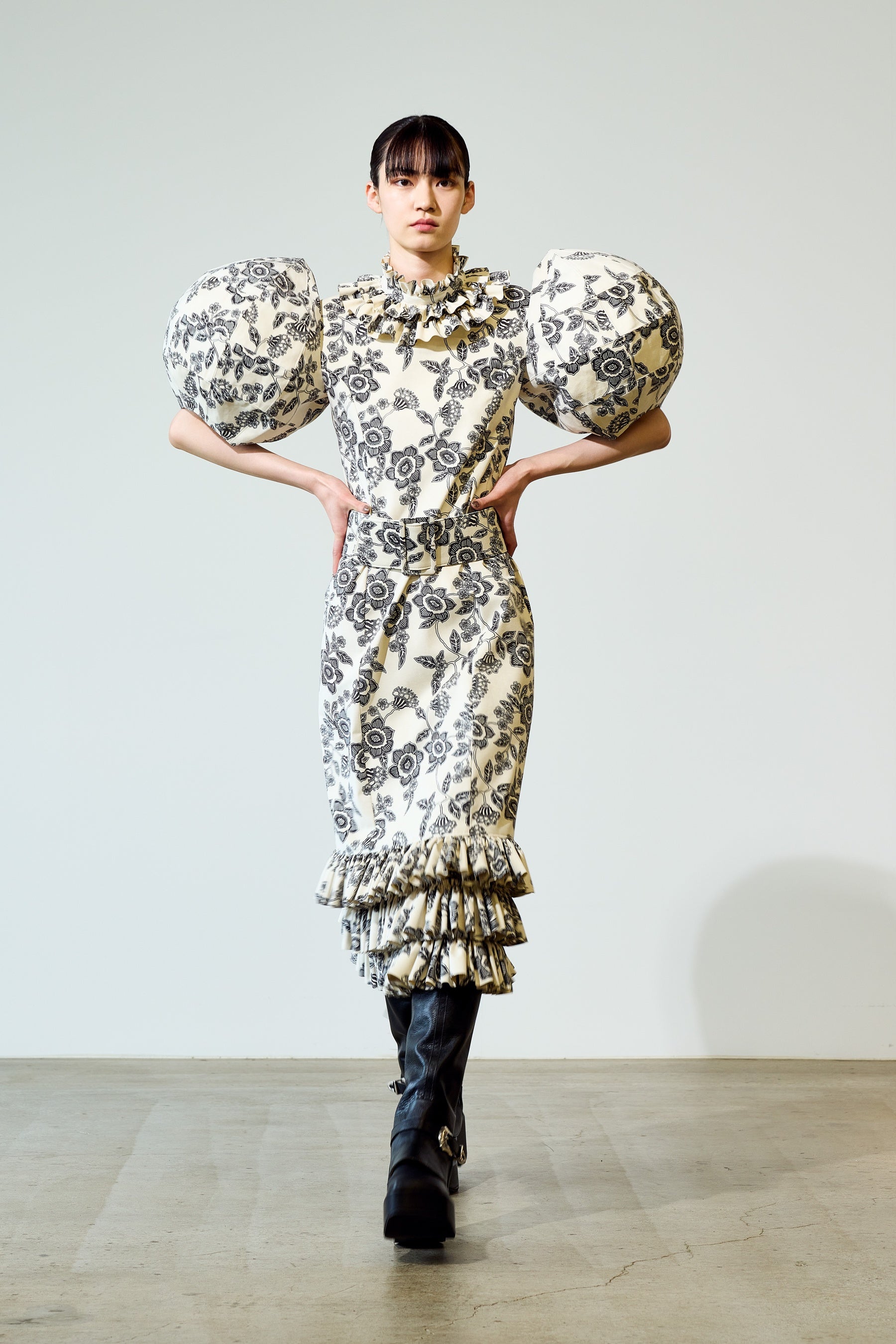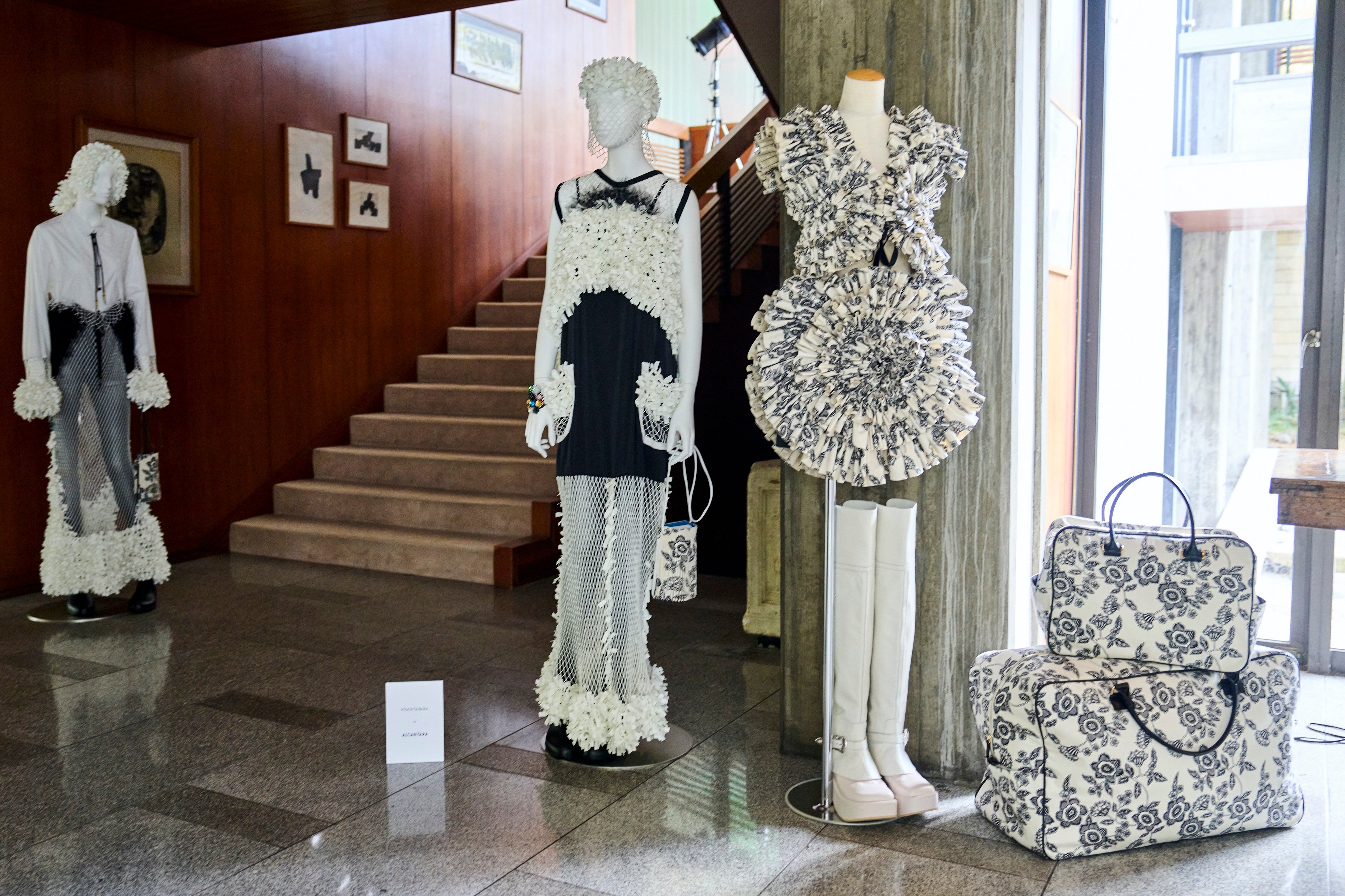 一方で、デジタルプリントで再現した花柄のパターンや結び目状にハンドメイド加工されたフリルなど、カスタマイズされたALCANTARA®を採り入れたデザイン性の高い作品を発表したFUMIE=TANAKAのデザイナーである田中文江氏は次のように今回のコラボレーションについて述べています。
