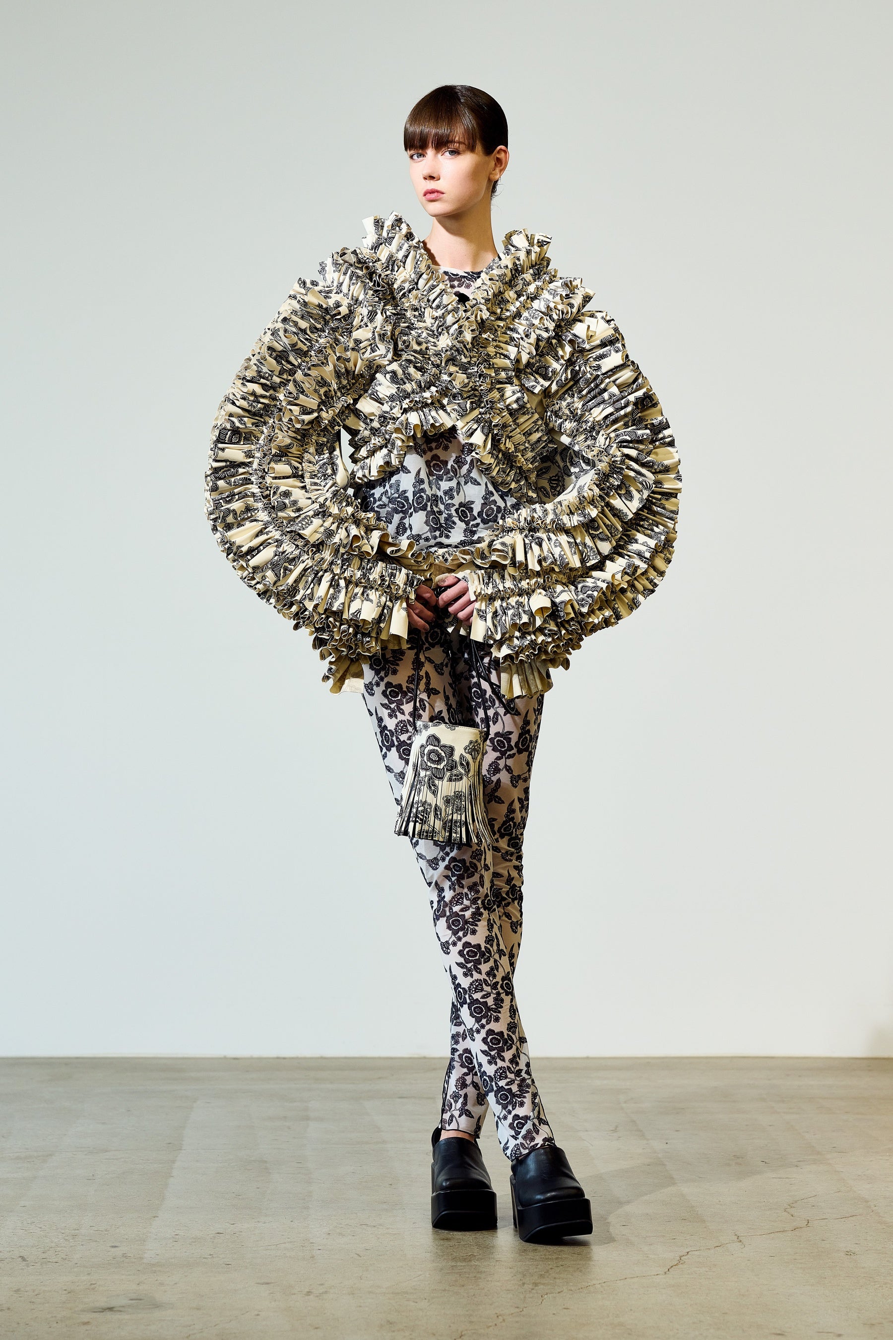「技術やサステナビリティへの取り組みなど、メイド・イン・イタリーで高い評価を得ているアルカンターラ社とのコラボレーションにより、我々のクリエーションに新しい側面を与えてくれたと実感しています。日本の刺繍工場で加工した花柄の切り抜きやフリンジ加工など、ALCANTARA®のマテリアルだから出来る表現をFACETASMらしいデザインに落とし込みました。」と、FACETASMのデザイナー落合宏理氏は今回のコラボレーションを祝いました。