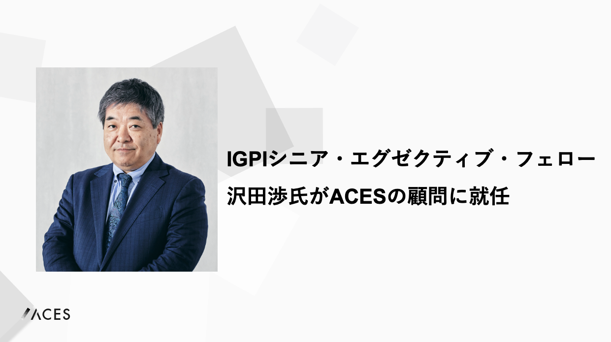 経営共創基盤シニア・エグゼクティブ・フェロー(三井住友銀行 元専務執行役員) 沢田渉氏がACESの顧問に就任