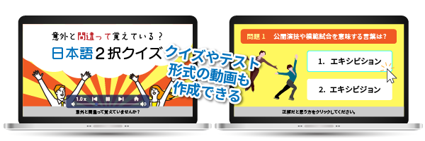 設問機能を用いることでクイズ動画やテスト動画を作成できるので、社内の新人研修や理解度チェックなどeラーニングとしてお使いいただけます。