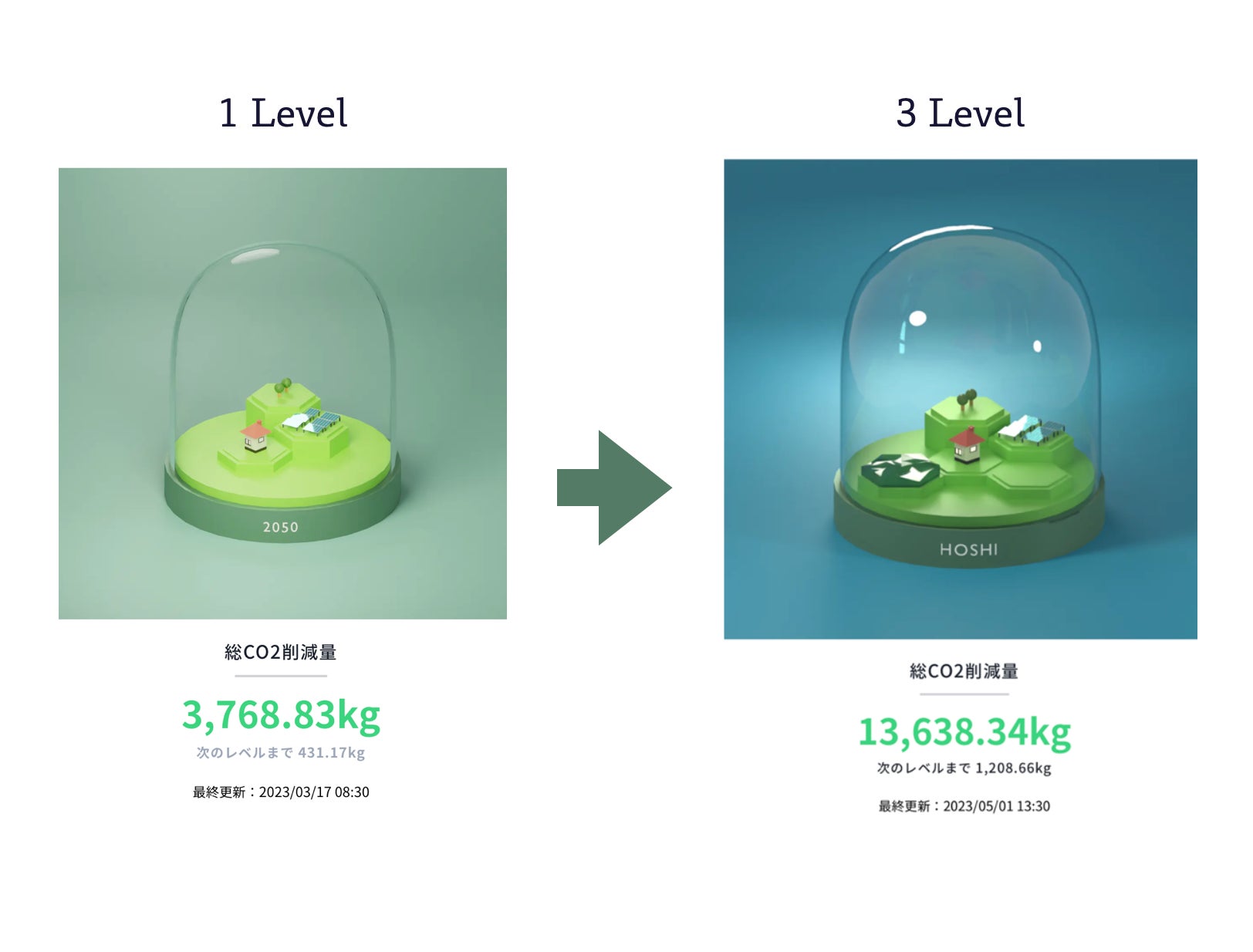 capture.xでは、デジタルオーナーになると、アプリ内でHOSHIがもらえます。HOSHIは、保有するNFTに紐づく環境貢献設備やプロジェクトが貢献したCO2削減量に応じて育っていきます。