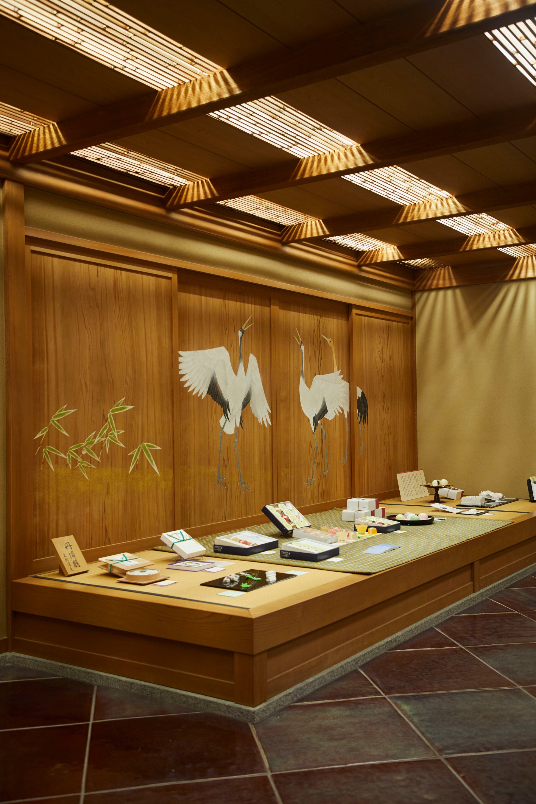 創業享和3年(1803年)の京菓子老舗「鶴屋吉信」本店2階の「お休み処」は、季節の甘味や美しい生菓子を落ち着いた和空間でお楽しみいただける茶寮でございます。