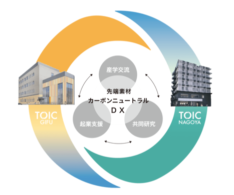 『Tokai Open Innovation Complex(TOIC)』は、東海国立大学機構の研究リソースを活かし、先端素材、カーボンニュートラル、DXの3分野を中心としたオープンイノベーションを推進する産学融合拠点です。拠点のコンセプトは「東海地域の課題解決に取り組むことにより、イノベーションを創出し地域の活性化を実現すること」。