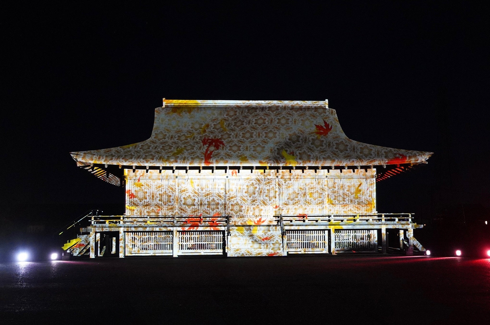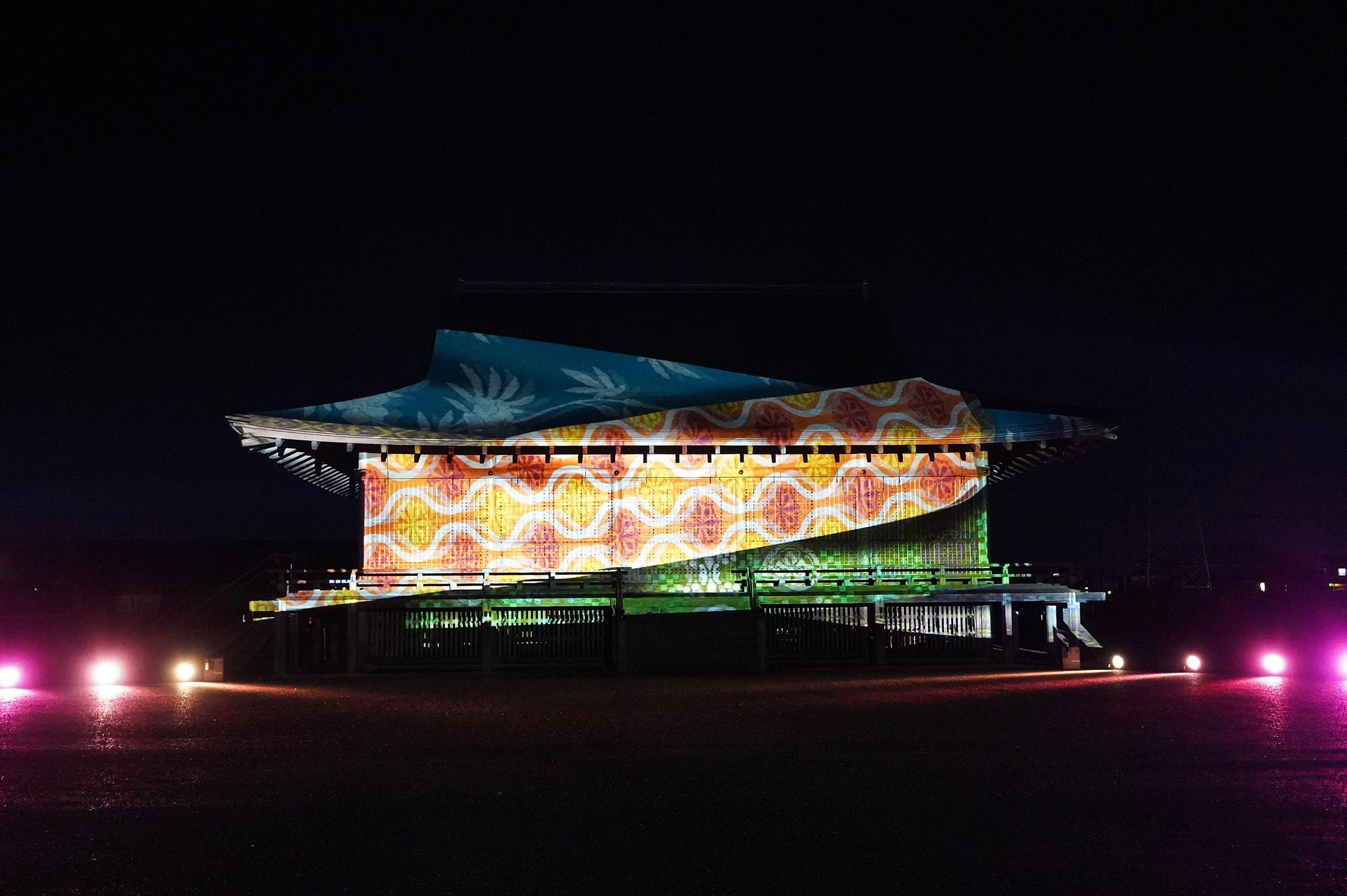 正殿・西脇殿・東脇殿の屋根に投影された平安模様などの伝統的な模様が変化しながら、日本の文化の変遷を表現しました。