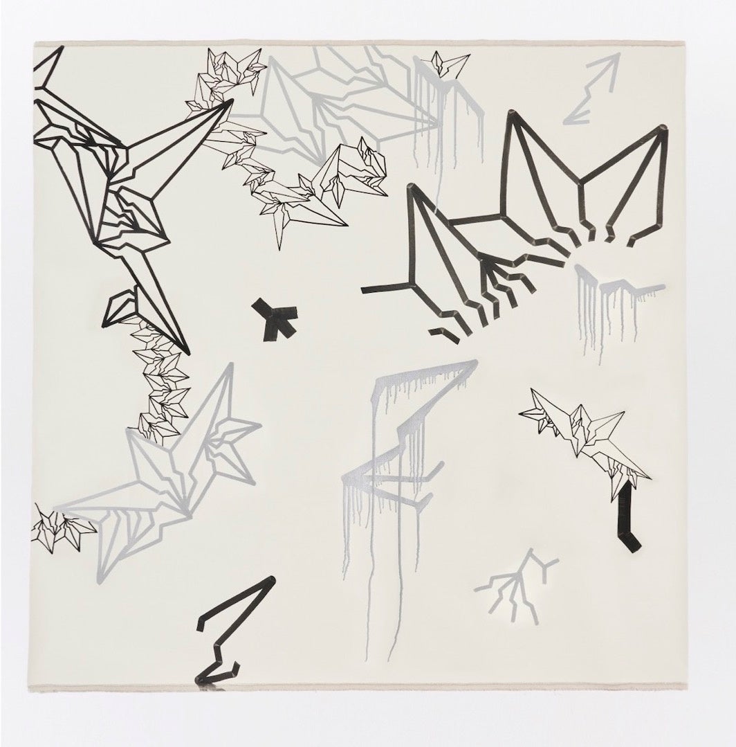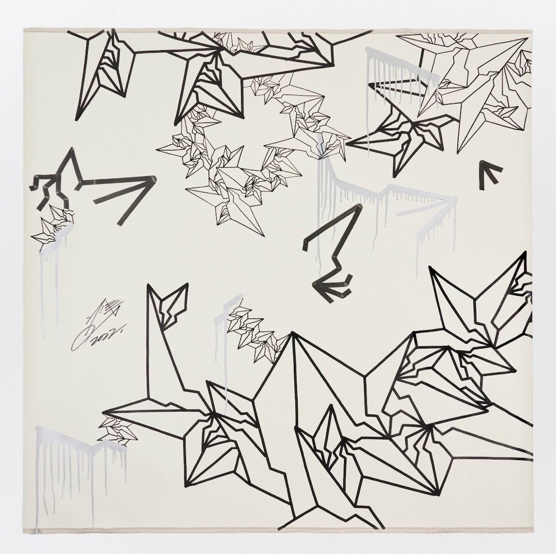 NFTの存在を新たに発掘された鉱物に喩え、その価値創造を変則的なBAKI柄で表現。フィジカルなライブペイントの一回性と共に、作家の脳波とリンクした音像作品を一体化したハイブリッドな作品。