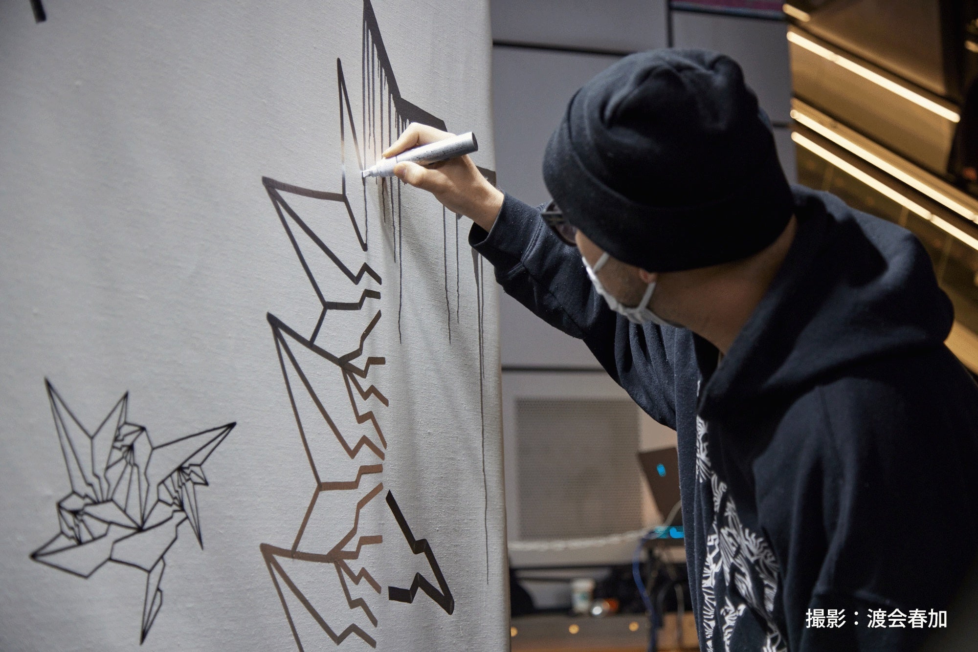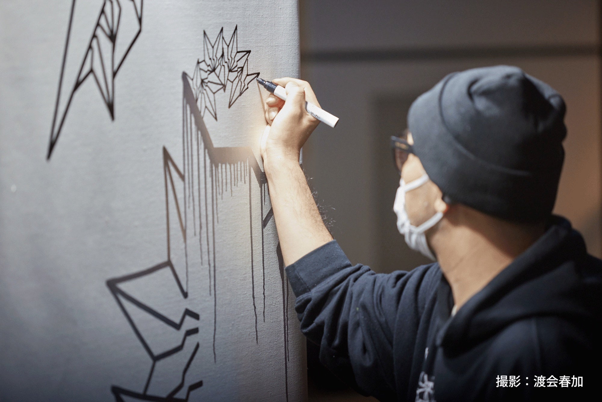 日本古来の文様をアップデートしたシグネチャーの『BAKI柄』は伝統とストリートカルチャーの融合を体現。その活動は壁画を軸に全国各地/世界13カ国でライブペインティングやワークショップを展開している。 2021年より大阪・淀川区の壁画プロジェクト"淀壁"を発足、2025年の大阪万博に向けて地域活性化に注力している。