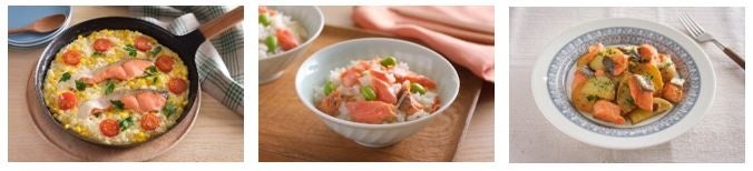 今回「イオン」「イオンスタイル」の試食販売では、フライパン一つで完成するオリジナルレシピで作る「アラスカ産紅鮭のクリーミーパエリア」をご用意いたします。アラスカ産塩紅鮭中辛塩味の切り身と他の材料をフライパンに入れるだけなので、面倒な下味の工程が一切不要のレシピです。