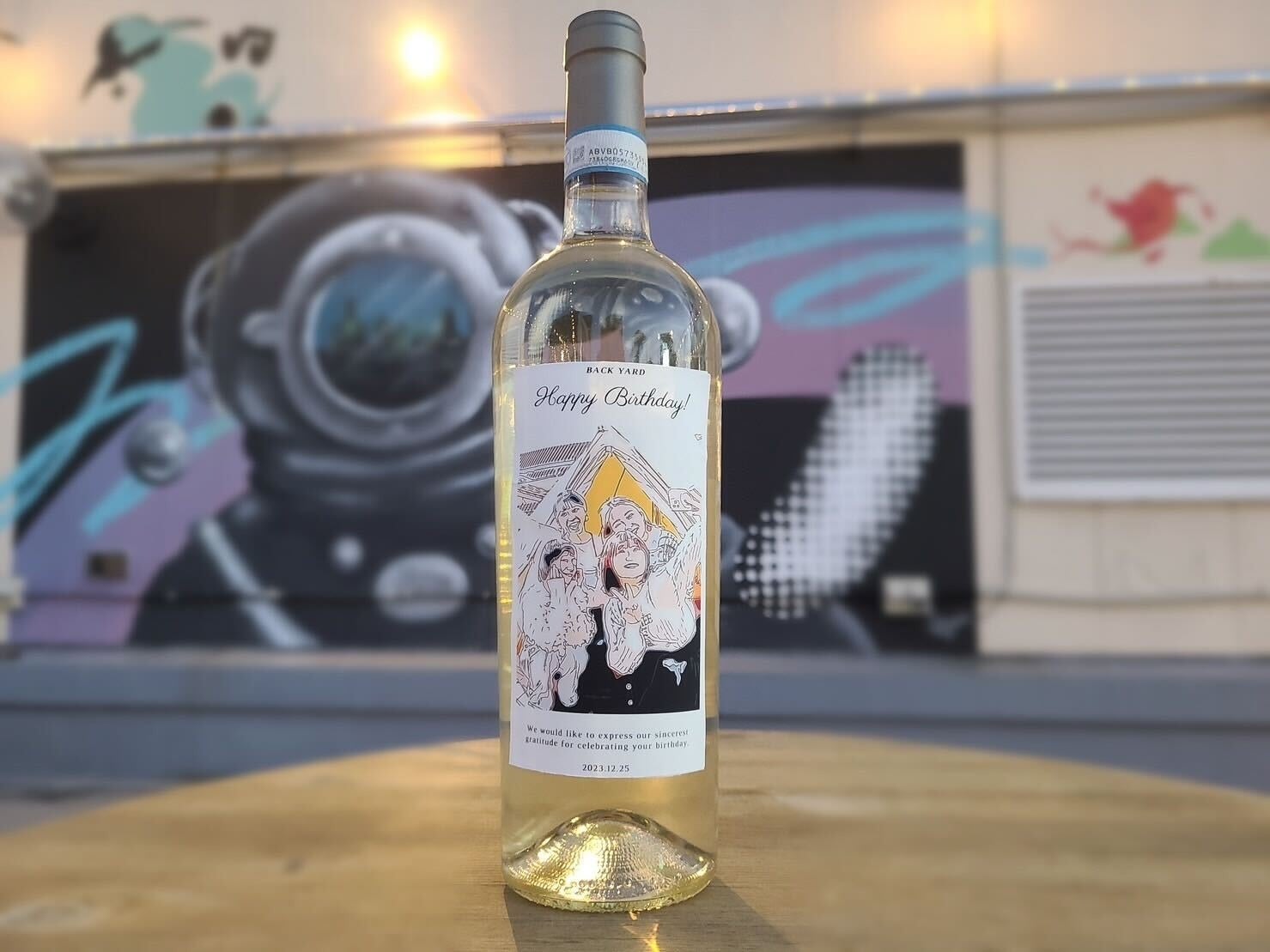 記念写真ラベル付きボトル(当日お撮りした写真をお帰りの際にラベルにしてワインボトルをプレゼント) 1,500円