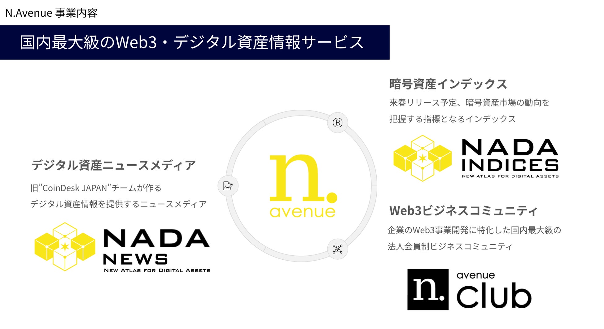 N.Avenue株式会社(本社:東京都港区、代表取締役 CEO:神本侑季)は、2019年より世界最大級のWeb3メディア「CoinDesk」の公式日本版として運営してきた「CoinDesk JAPAN」を、本日より独自ブランドである「NADA NEWS(ナダ・ニュース)- New Atlas for Digital Assets -」としてリニューアルいたしました。