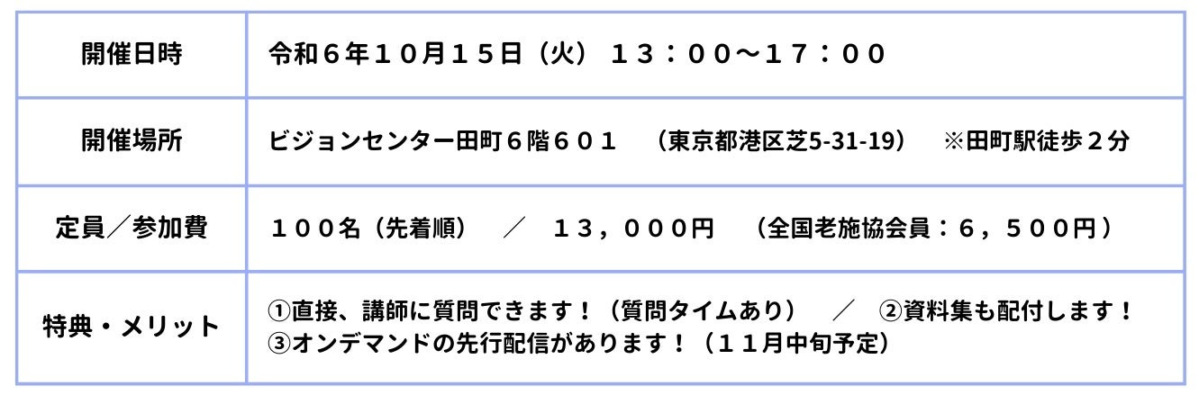 下記ボタンよりお申し込みができます。 ※全国老施協「集合研修」ページ