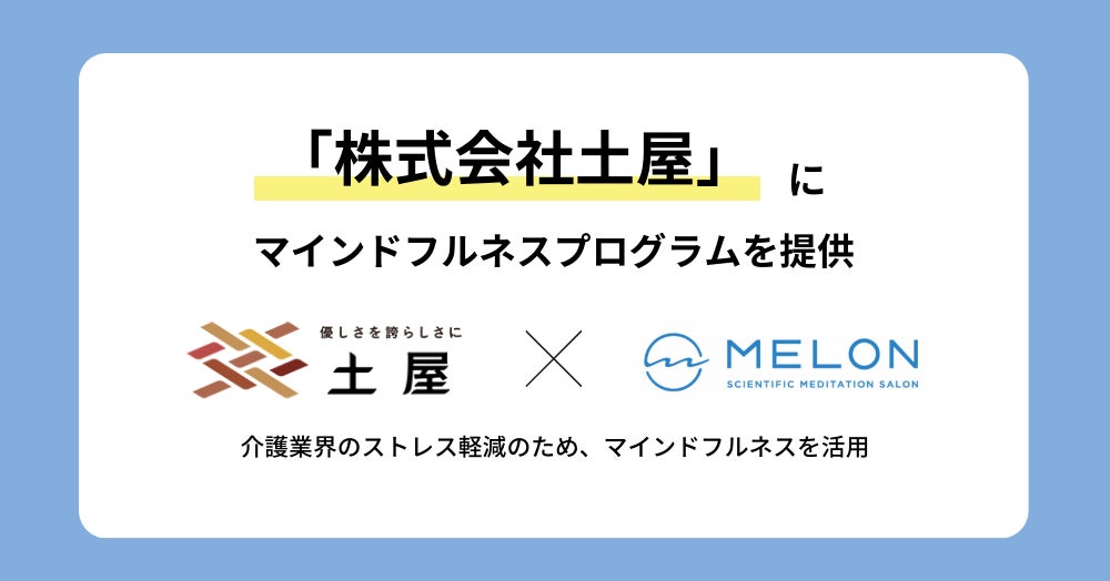 組織の心と感情の課題を解決するエモーショナルマネジメントを提供する株式会社Melon(本社:東京都港区、代表取締役CEO:橋本大佑、以下MELON)は、重度の障害をお持ちの方に対する訪問介護サービスを全国で展開し、高齢者向けサービスや定期巡回、訪問看護などを行う株式会社土屋(所在地:岡山県井原市、代表取締役社長:高浜 敏之)に、MELONのマインドフルネスプログラムを提供したことをお知らせします。