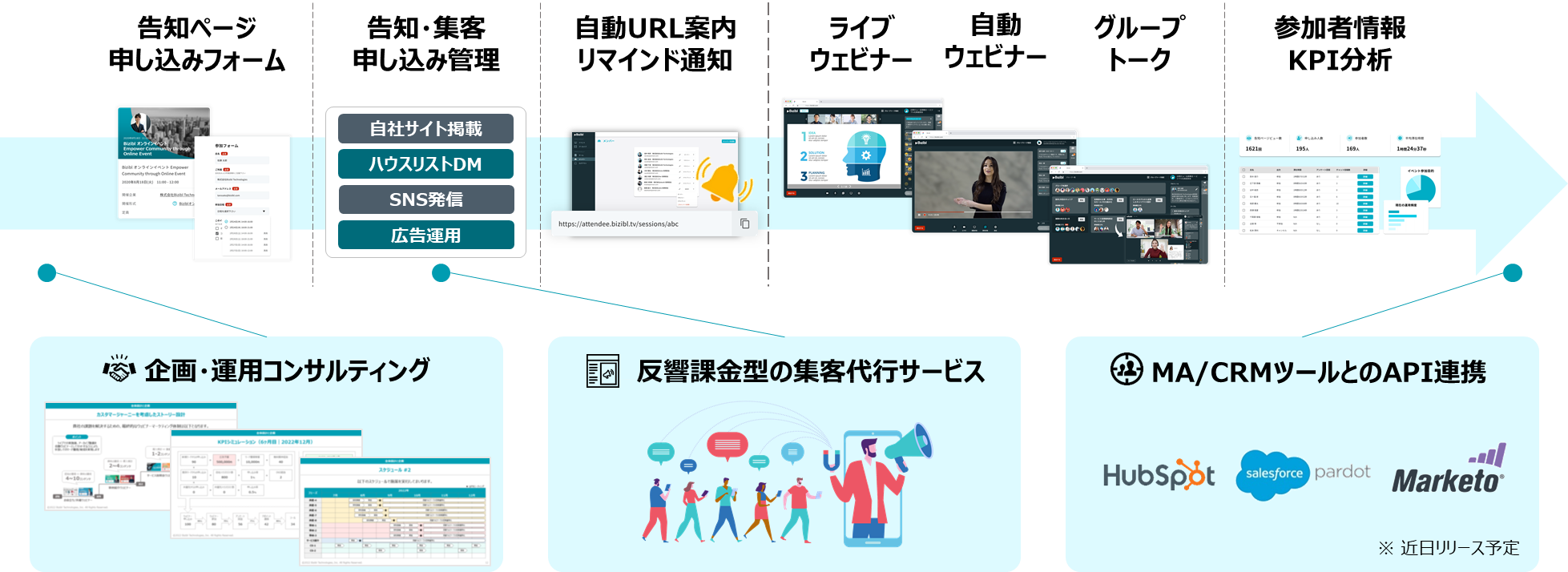 「Bizibl」は、今後も企業のウェビナーマーケティングの工数削減ならびに成果最大化に向き合う機能を拡充してまいります。