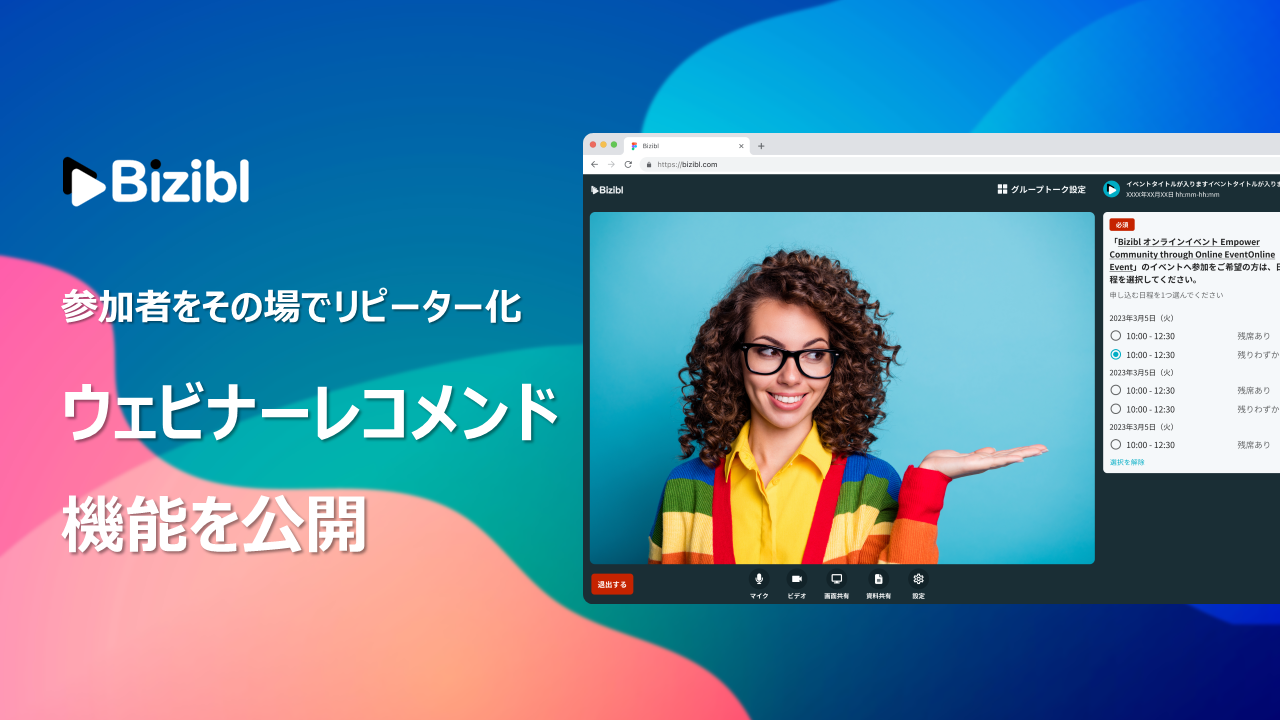 参加者をその場でリピーター化する!ウェビナーマーケティングSaaS「Bizibl」が「ウェビナーレコメンド機能」を公開