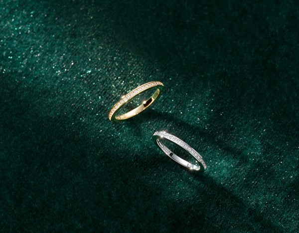 SHINCAが2024年に発表するHoliday Collectionでは、ラボグロウンダイヤモンドの輝きとメタルのストレートラインのコントラストが美しいエタニティリング、そしてラボグロウンダイヤモンドが3石輝くネックレスが新たに登場。エタニティリングは、SHINCAで人気のE005エタニティリングを継承する、華やかさの中にもエッジを効かせたシャープなデザインで、お客様からのご要望が多かった、より普段使いしやすい幅細タイプのリングになります。ネックレスは、小粒ながらも存在感を放つ大中小のラボグロウンダイヤモンドを逆三角形のように配置。ほどよいサイズ感で、毎日でも身に着けたくなるアイテムとしてお薦めです。