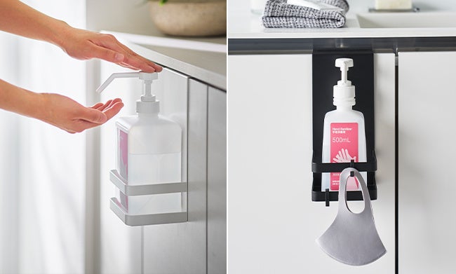 ペット用の給水器を設置できるスタンドや、下駄箱に引っ掛けて使える除菌ボトル用のラックなど、新商品発売中です。