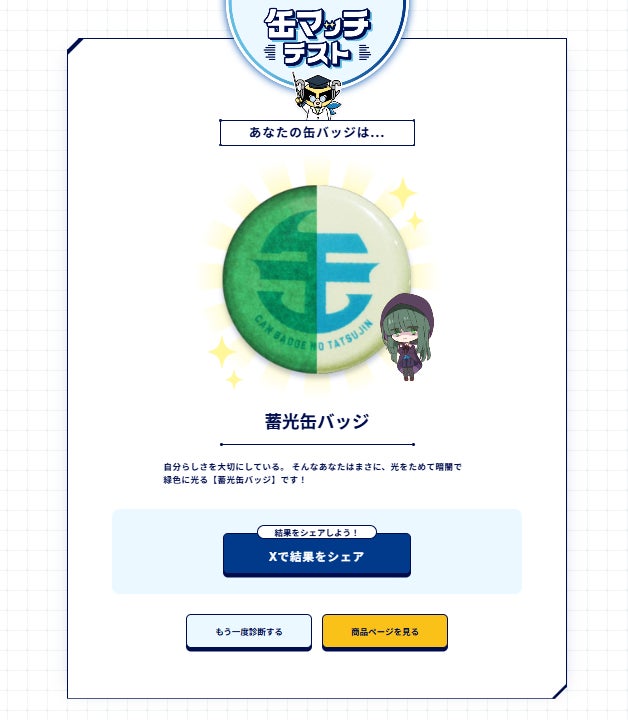 4月23日、「缶バッジの達人」があなたにオススメの缶バッジを診断する「缶マッチテスト」をスタート