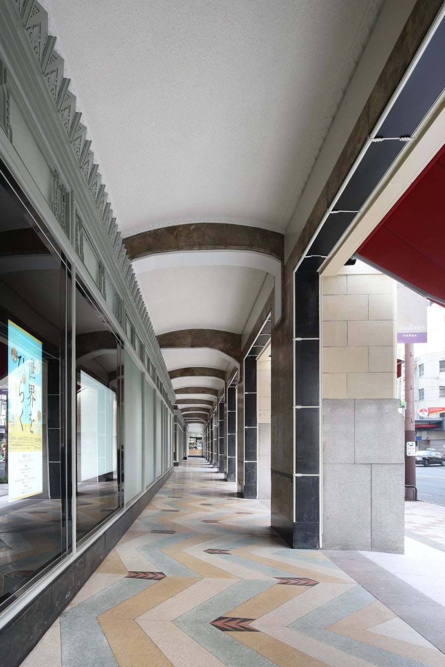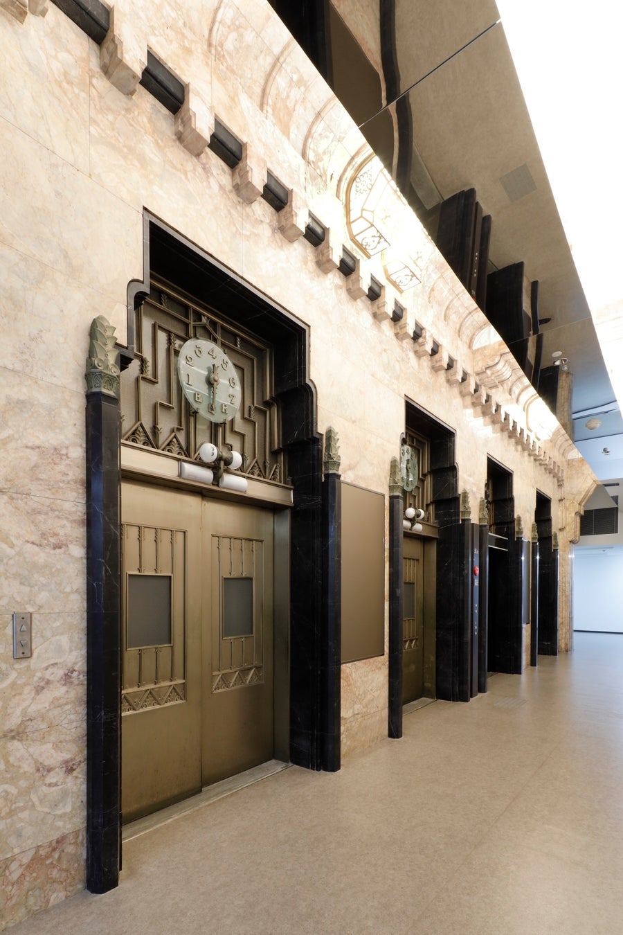 設計は鈴木禎次(1870~1941)で、ヨーロッパ歴史様式にアール・デコ調の装飾デザインが取り入れられています。特に堺筋に沿って続く11連アーチのアーケードや、ところどころに施されたアカンサスの葉をモチーフにしたテラコッタの装飾、内部のエレベーターや階段まわりの細やかな装飾など、建築的に価値のある見どころが随所に残っています。