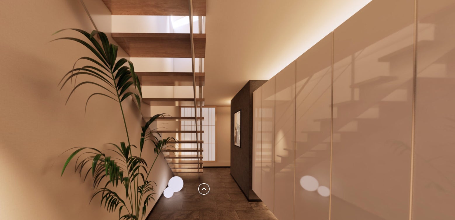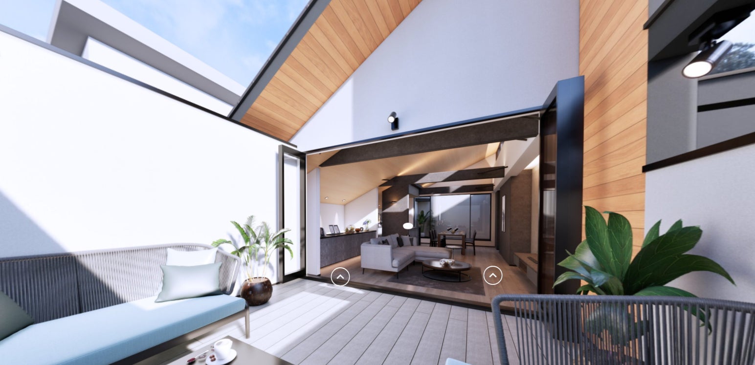 AR操作によって、物件内部を歩いているかのようにバーチャル内見が可能です。採光、空間感覚など実物と変わらないレベルで体感することが可能です。