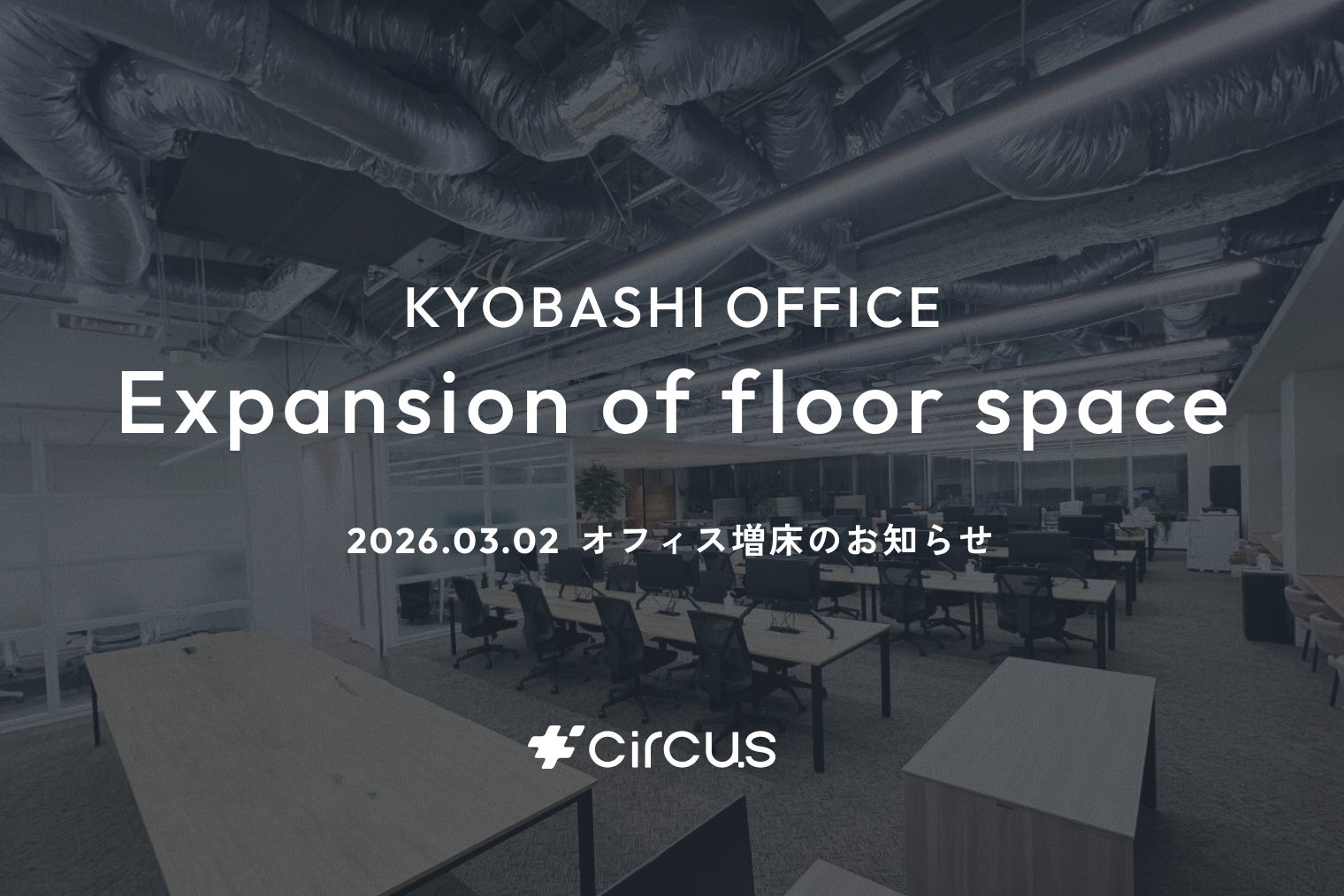 circus株式会社(所在地:東京都中央区、代表取締役:⽮部 貴志)は、事業・組織拡大に伴い、本社オフィスを増床したことをお知らせします。