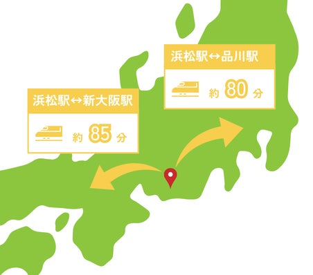 静岡県浜松市は東からも西からも好アクセス。全国から集まるチームにもお勧めの立地です。少し足を伸ばせば山川海があり、“都会と田舎のハイブリッド”な場所とも言えます。