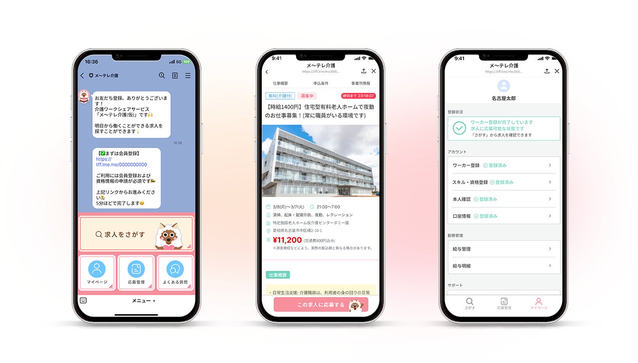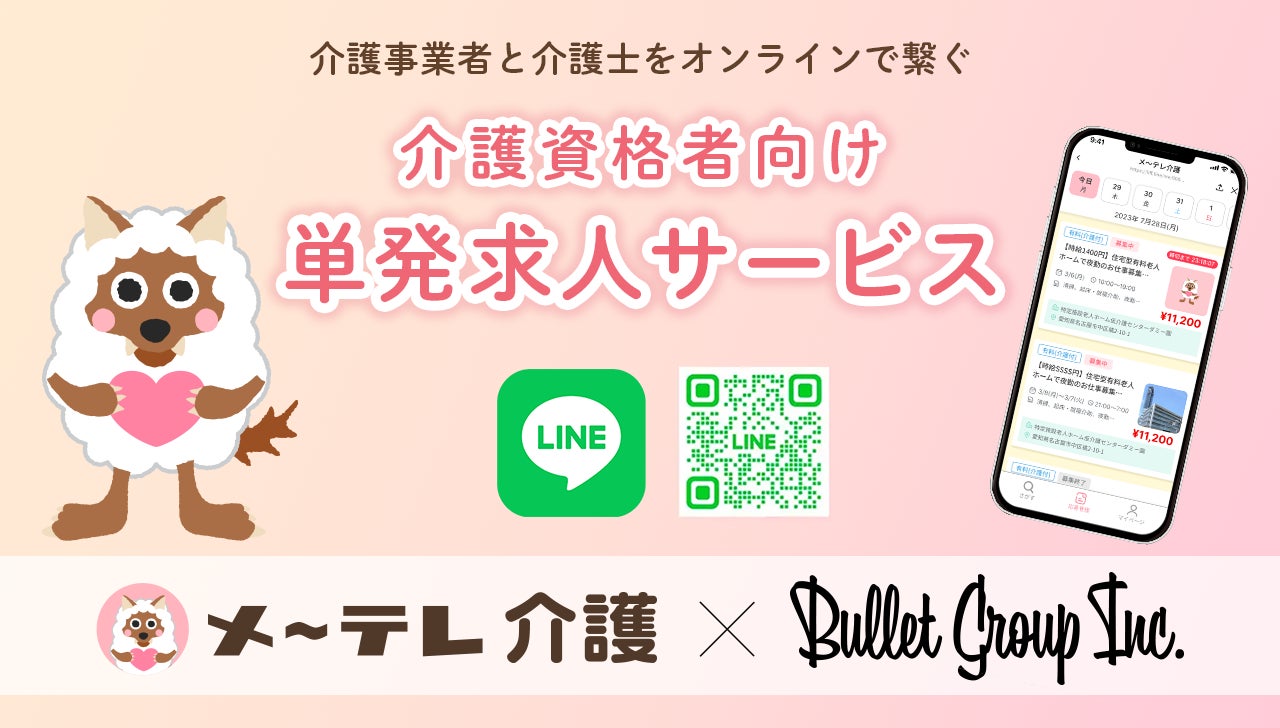 バレットグループ株式会社(所在:東京都新宿区、代表取締役:小方 厚/以下バレットグループ)のシステムデベロップメントカンパニー(カンパニープレジデント:後藤 衛/以下SDC)は、名古屋テレビ放送株式会社(所在:愛知県名古屋市、代表取締役社長:狩野 隆也/以下メ~テレ) に、介護資格者向けの単発求人サービス「メ~テレ介護」におけるLINE上で動作するウェブアプリ(ユーザーがLINEをインストールしていれば新たにアプリのインストールは不要)の開発を支援したことをお知らせいたします。