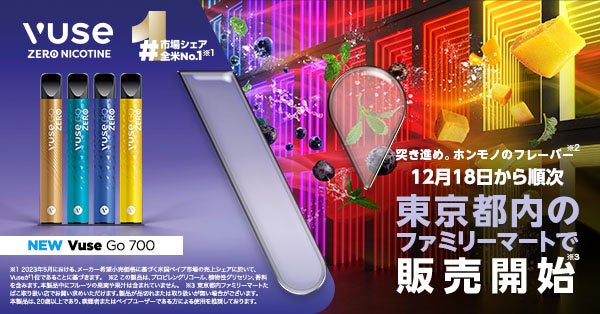 全米No.1(※1)のゼロニコチンタイプのベイプ製品「Vuse Go 700」12月18日より東京都内ファミリーマート約2,300店舗(※3)へ販売拡大