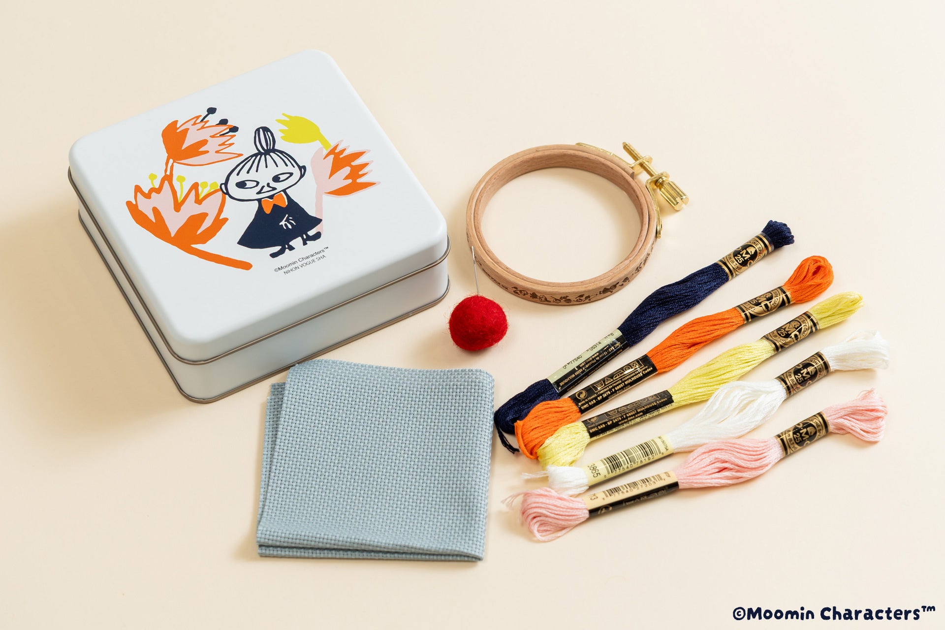 リトルミイフェアのメインアートを刺繍で楽しめるクロスステッチキット。刺しゅう枠にもリトルミイがプリントされた、オリジナル仕様です。