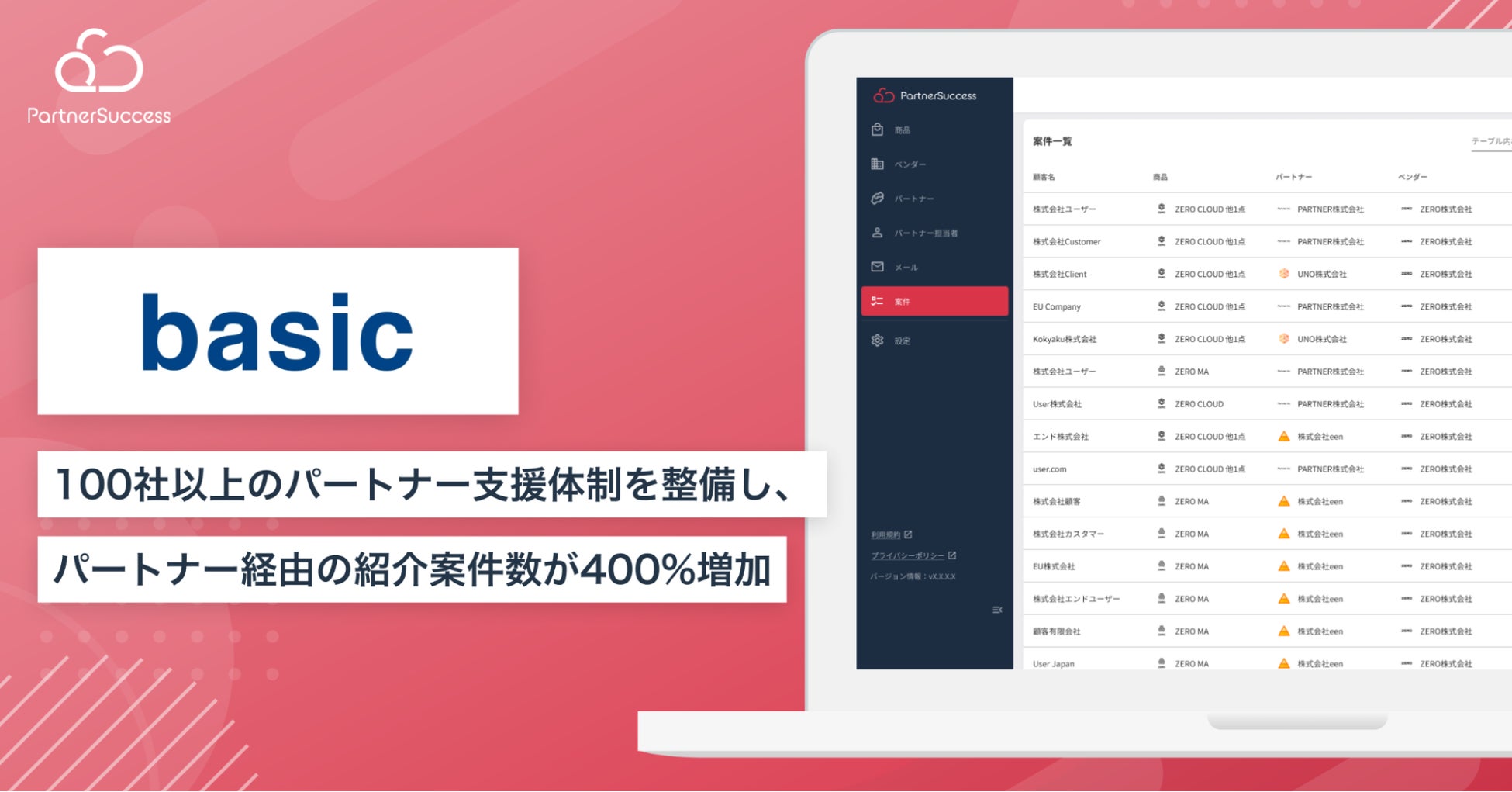 【パートナーサクセス導入事例】株式会社ベーシック、代理店連携管理クラウド「PartnerSuccess」を活用し紹介案件数が400%増加