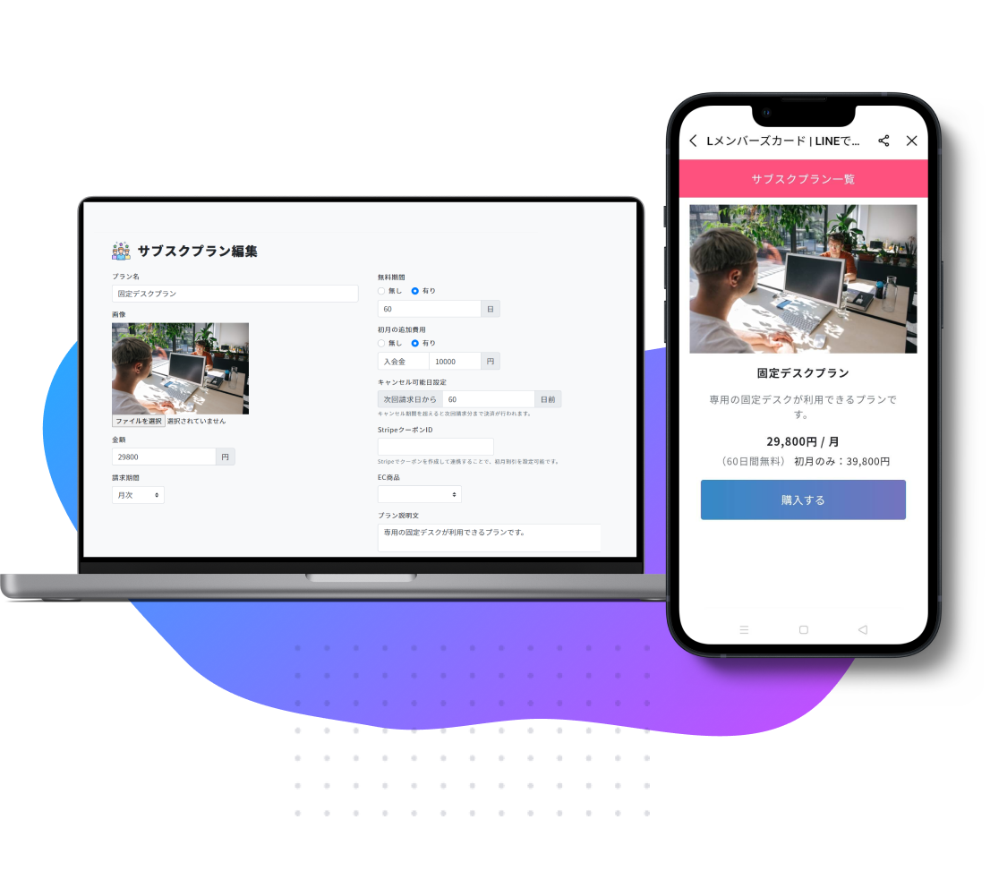 - 簡単にサブスクプランを作成し、LINE上で運用できるように。