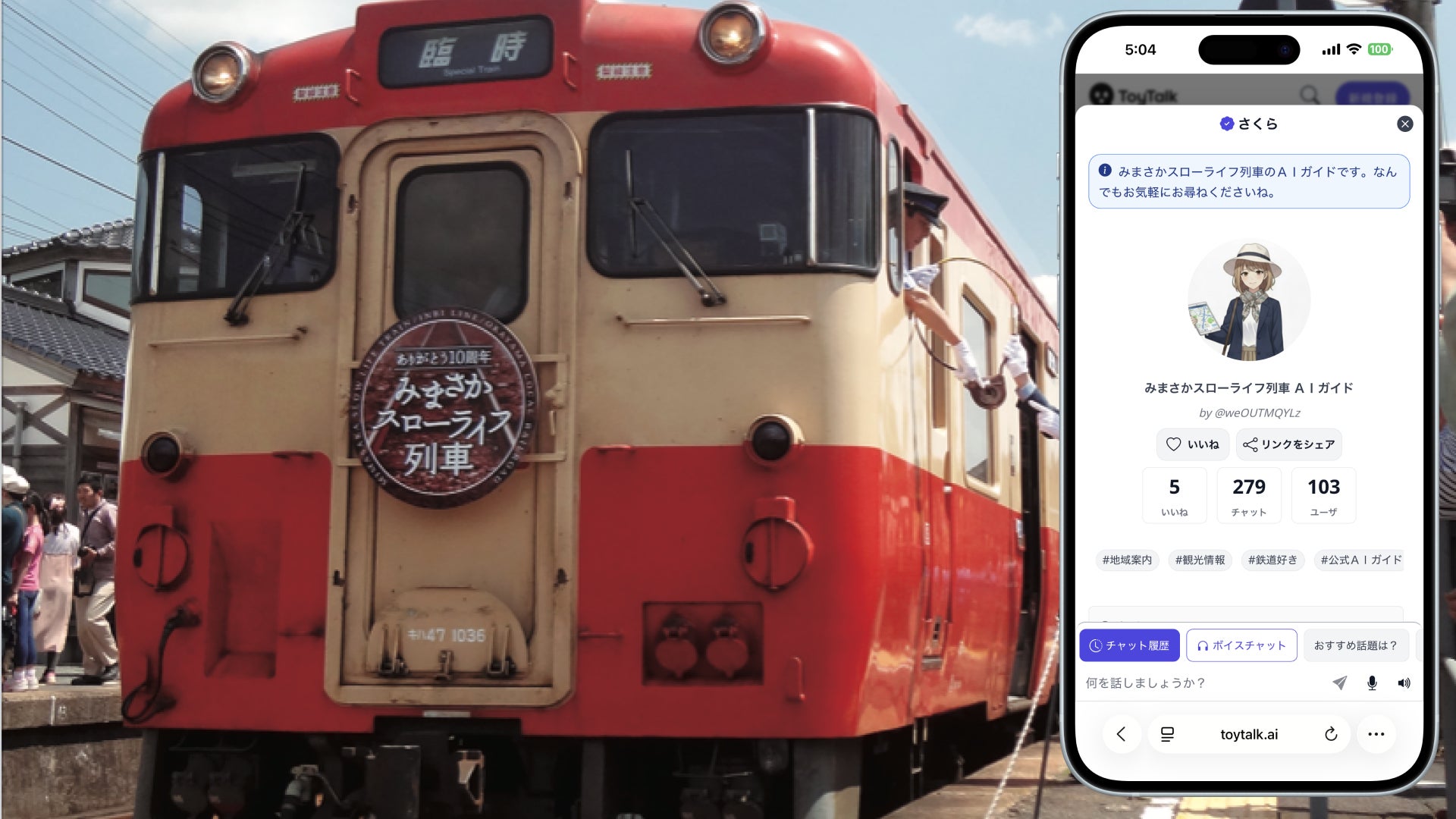 ToyTalk、岡山県と連携し「みまさかスローライフ列車」でAI観光ガイド実証を実施