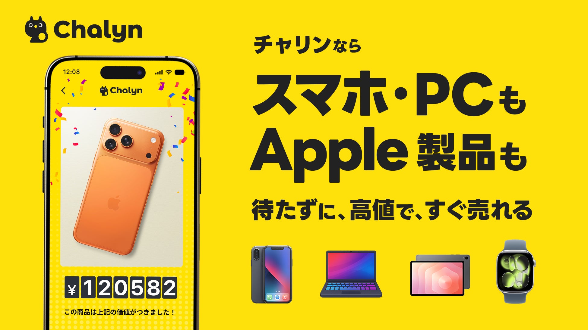 AI即金アプリ「Chalyn(チャリン)」、スマホ・PC・Apple製品の買取開始!