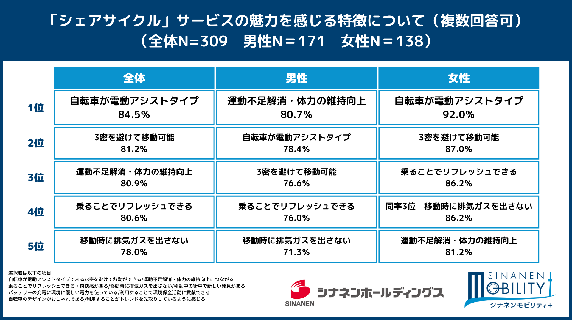 対象者条件:東京都、神奈川県、埼玉県、千葉県に居住する15-69歳の男女、直近3か月以内にいずれかのシェアサイクルサービスの利用経験有