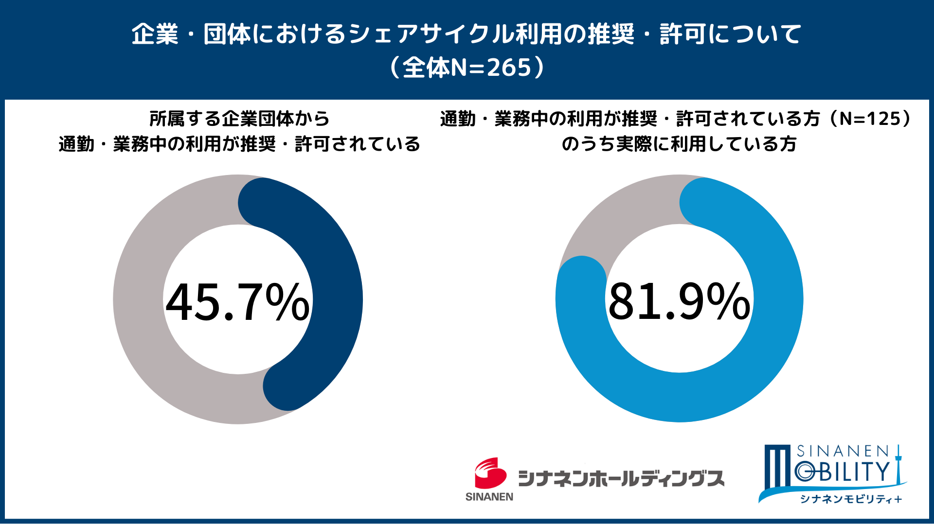 ・シェアサイクル利用者が所属する企業・団体の45.7%が通勤/業務中の利用を推奨・許可