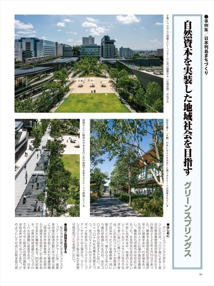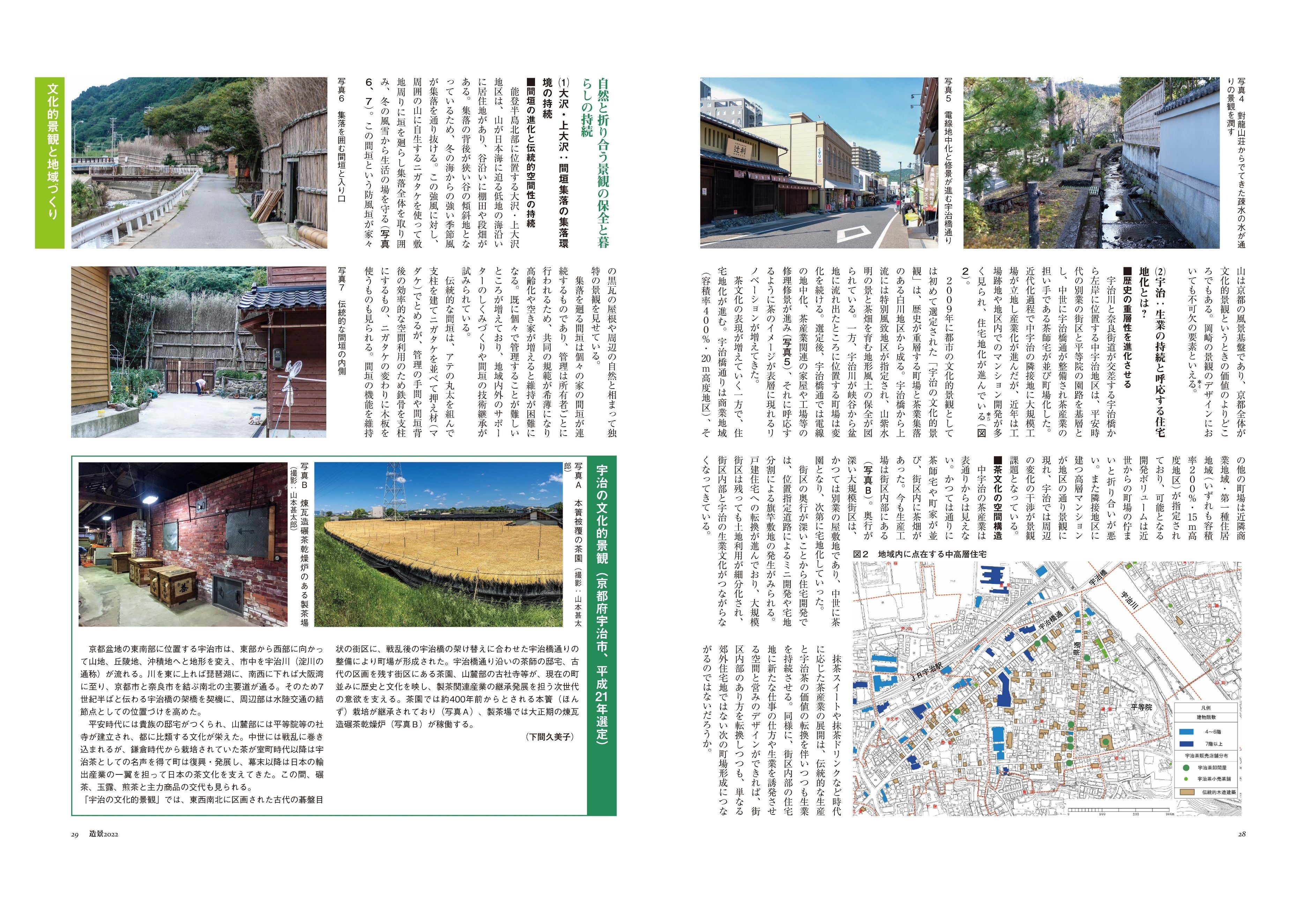 特別企画「文化的景観と地域づくり」は、各地域が自らの歴史を再認識し、地域づくりの戦略を立案して、文化的景観を形成していくことを望み、2部構成とした。地域レポート「中標津における〈文化的〉景観の取り組み」では、北の大地に拡がる格子状防風林の景観を守り、地域づくりと結び付ける活動に地域全体で20年以上に及び取り組む姿を詳細にレポート。特集「文化的景観の挑戦と課題」では、国の文化的景観制度を解説するとともに、景観デザイン、情報、地域づくりの観点から、その可能性と課題について特集する。