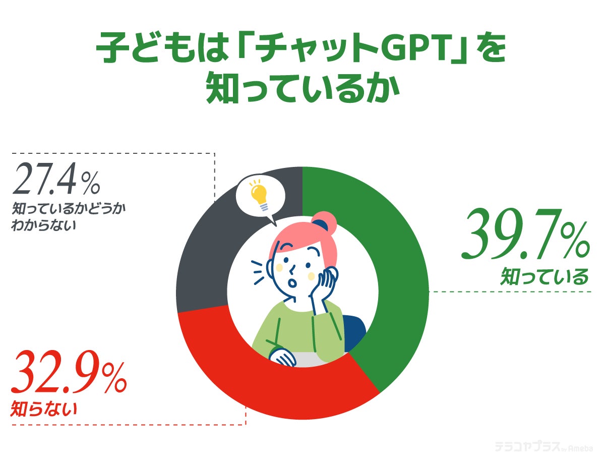 続いて、「子どもはチャットGPTを知っているか」保護者に尋ねたところ、約4割(39.7%)が子どもはチャットGPTを「知っている」と回答しました。