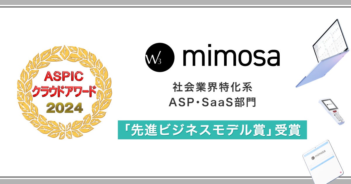 在庫管理システム「W3 mimosa」が「ASPICクラウドアワード2024」において『先進ビジネスモデル賞』を受賞しました。